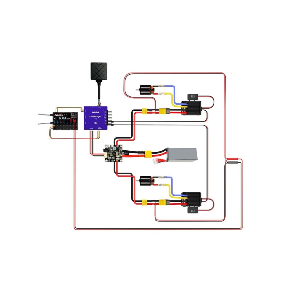 Provozní rozsah napájecích napětí 3–12 V umožňuje fungování s napájením z 1–2S LiPo/Li-ion, 2S LiFe, 4-8čl. NiMH nebo BEC stabilizátorů 5–12 V.