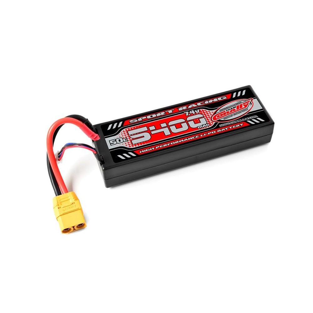 Team Corally SPORT RACING verze pro začínající závodníky s kapacitou 5500mAh v Hardcase verzi. Konfigurace: 2S 1P, rozměry: 138x47x25mm, XT90 napájecí konektor, XH-2S balanční konektor.
