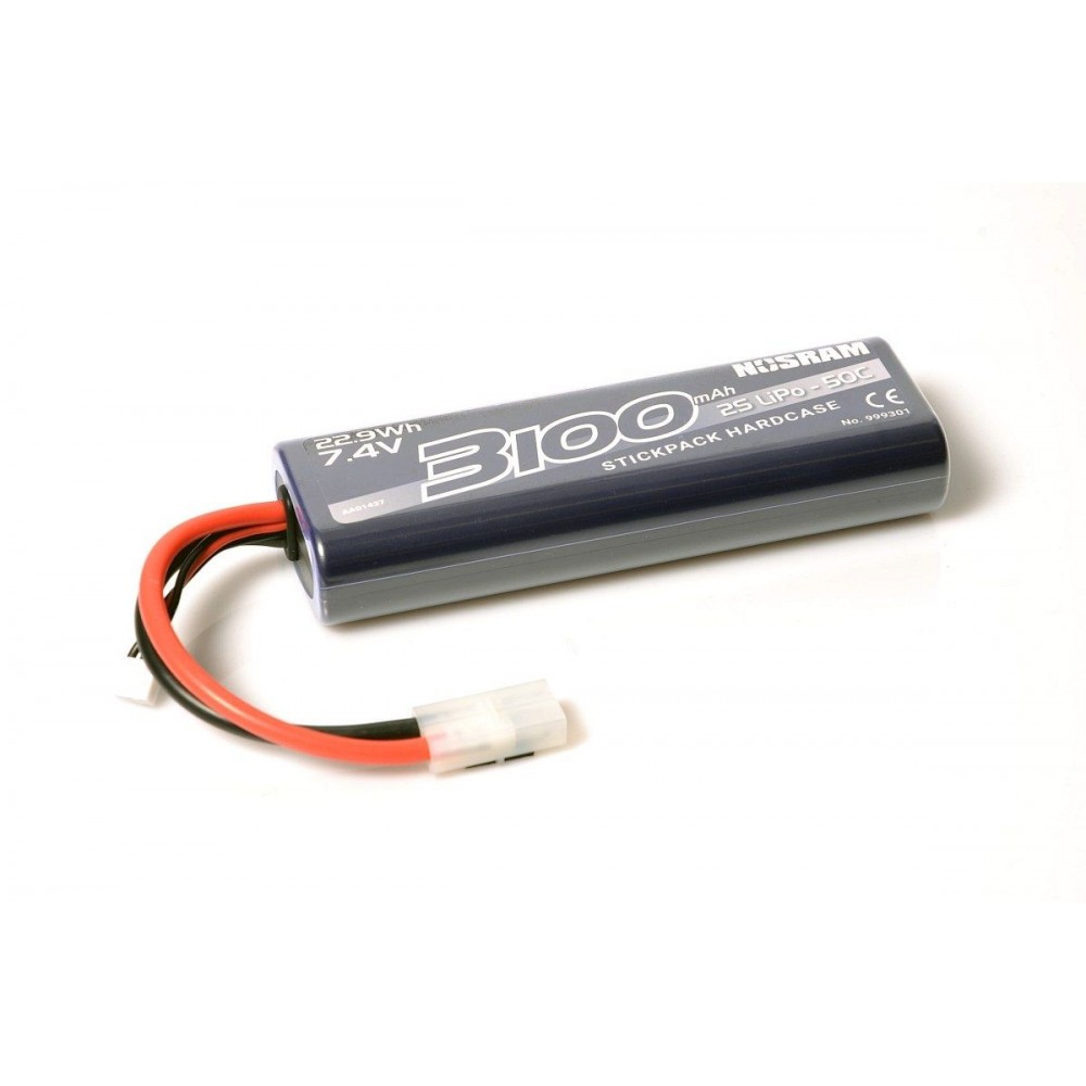 s TAMIYA konektorem, kapacita 3100mAh, 50C vybíjecí proud (krátkodobě 60C), balanční konektory XH-2S, napětí 7,4V/2S, délka: 134mm, šířka: 45,0mm, výška: 24mm, váha: 193-195g.