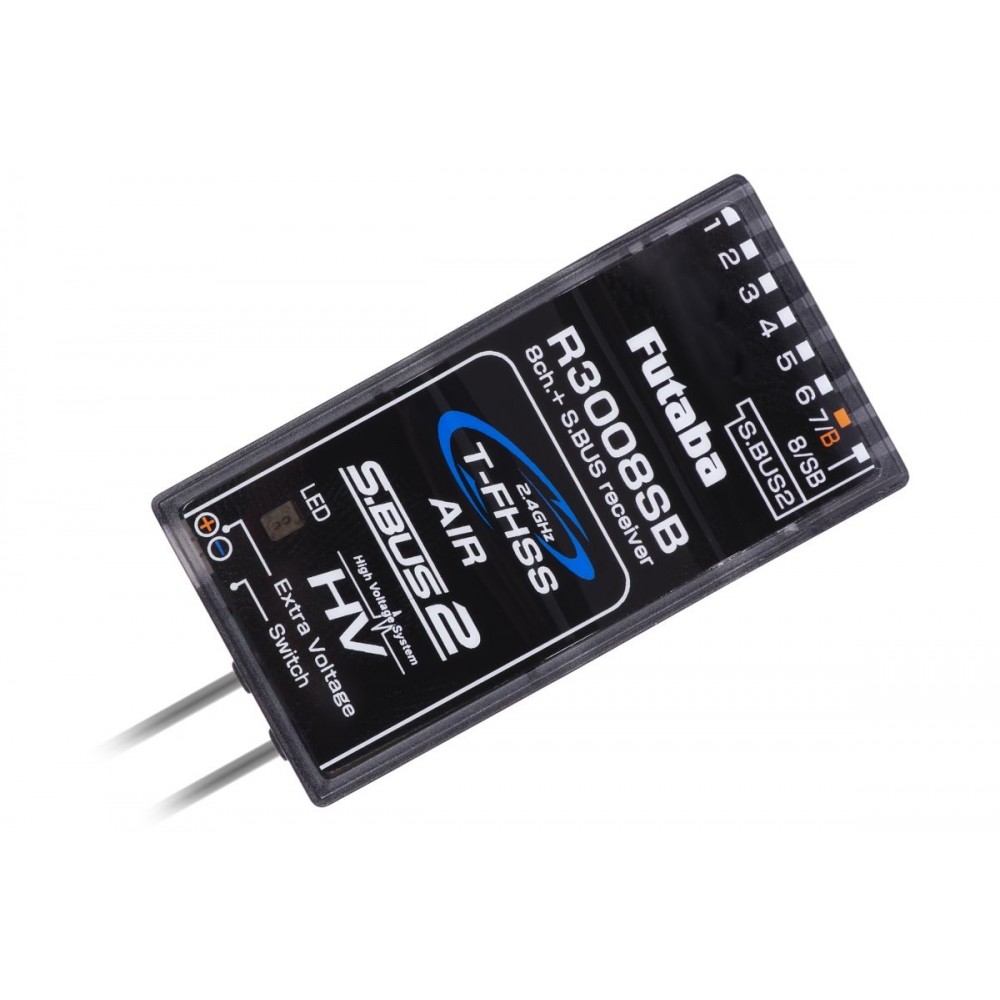 Osmikanálový telemetrický přijímač Futaba přenosového systému T-FHSS Air-2.4GHz s dvojicí diverzitních antén s plným dosahem. Je určen pro všeobecné použití v modelech všech kategorií; díky kompaktním rozměrům, nízké hmotnosti a konektorům zasouvaným v podélné ose je vhodný i pro modely se štíhlým trupem, jako jsou větroně F3B, F3J apod. Díky volitelným kanálovým režimům a možnosti dvoupřijímačového provozu výborně poslouží i v modelech vyžadujících velký počet kanálů – v takovém případě dvojice R3008SB poskytne až 16 klasických PWM kanálových výstupů nebo 14-15 PWM výstupů a 1-2 S.BUS sériové výstupy. Kromě toho je přijímač vybaven portem S.BUS2 pro obousměrnou komunikaci umožňující připojení S.BUS2 serv, telemetrických čidel a dalších kompatibilních zařízení. Provozní stavy přijímače jsou signalizovány LED indikátorem.