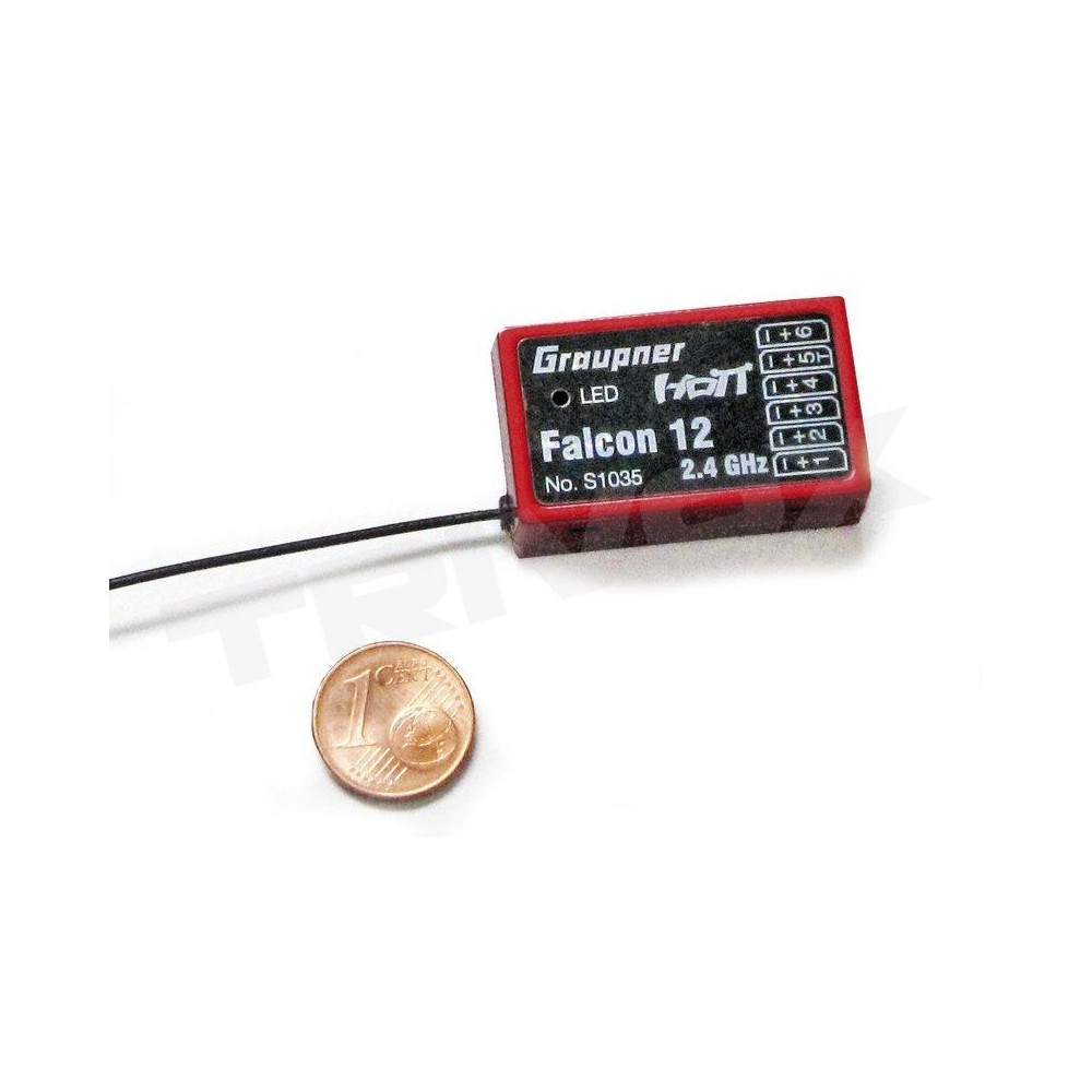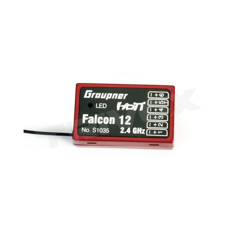 Nový anténní zesilovač zajišťuje delší dosah (3000m) i pomocí jedné antény. Rychlejší 32bitový procesor L4 zaručuje energeticky úsporný provoz a vyšší výkon. Falkon 12 leze použít jako řídící jednotku pro vrtulníky z bezpadlovou hlavou a nebo jako řídící jednotku pro multikoptéry.
