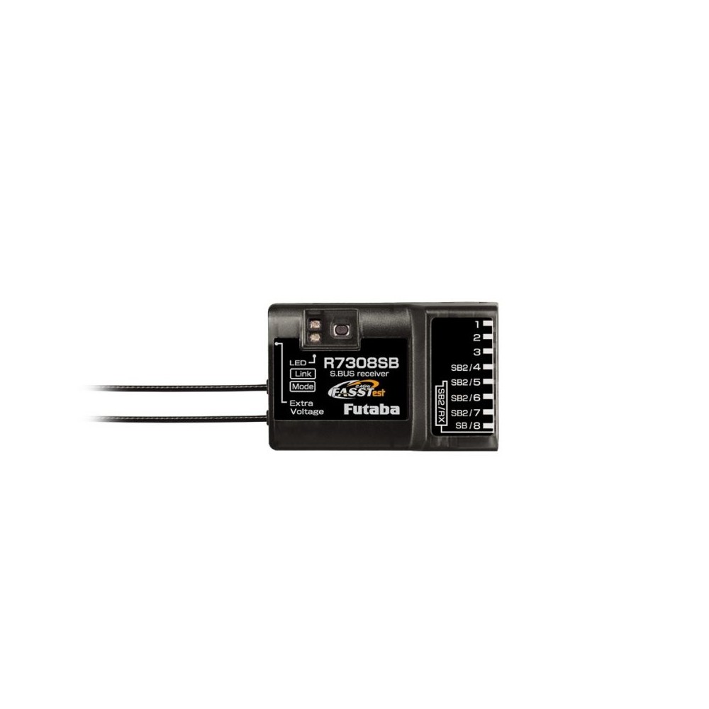 Osmikanálový telemetrický přijímač Futaba přenosového systému FASSTest-2.4GHz s dvojicí diverzitních antén s plným dosahem. Je určen pro všeobecné použití v modelech všech kategorií; díky kompaktním rozměrům, nízké hmotnosti a konektorům zasouvaným v podélné ose je vhodný i pro modely se štíhlým trupem, jako jsou větroně F3B, F3J apod. Díky volitelným kanálovým režimům a možnosti dvoupřijímačového provozu výborně poslouží i v modelech vyžadujících velký počet kanálů – v takovém případě dvojice R7308SB poskytne až 16 klasických PWM kanálových výstupů nebo 14-15 PWM výstupů a 1-2 S.BUS sériové výstupy. Kromě toho je přijímač vybaven portem S.BUS2 pro obousměrnou komunikaci umožňující připojení S.BUS2 serva, telemetrických čidel a dalších kompatibilních zařízení, jako S.BUS2 porty mohou sloužit také zásuvky kanálů 4-7. Provozní stavy přijímače jsou signalizovány LED indikátorem.