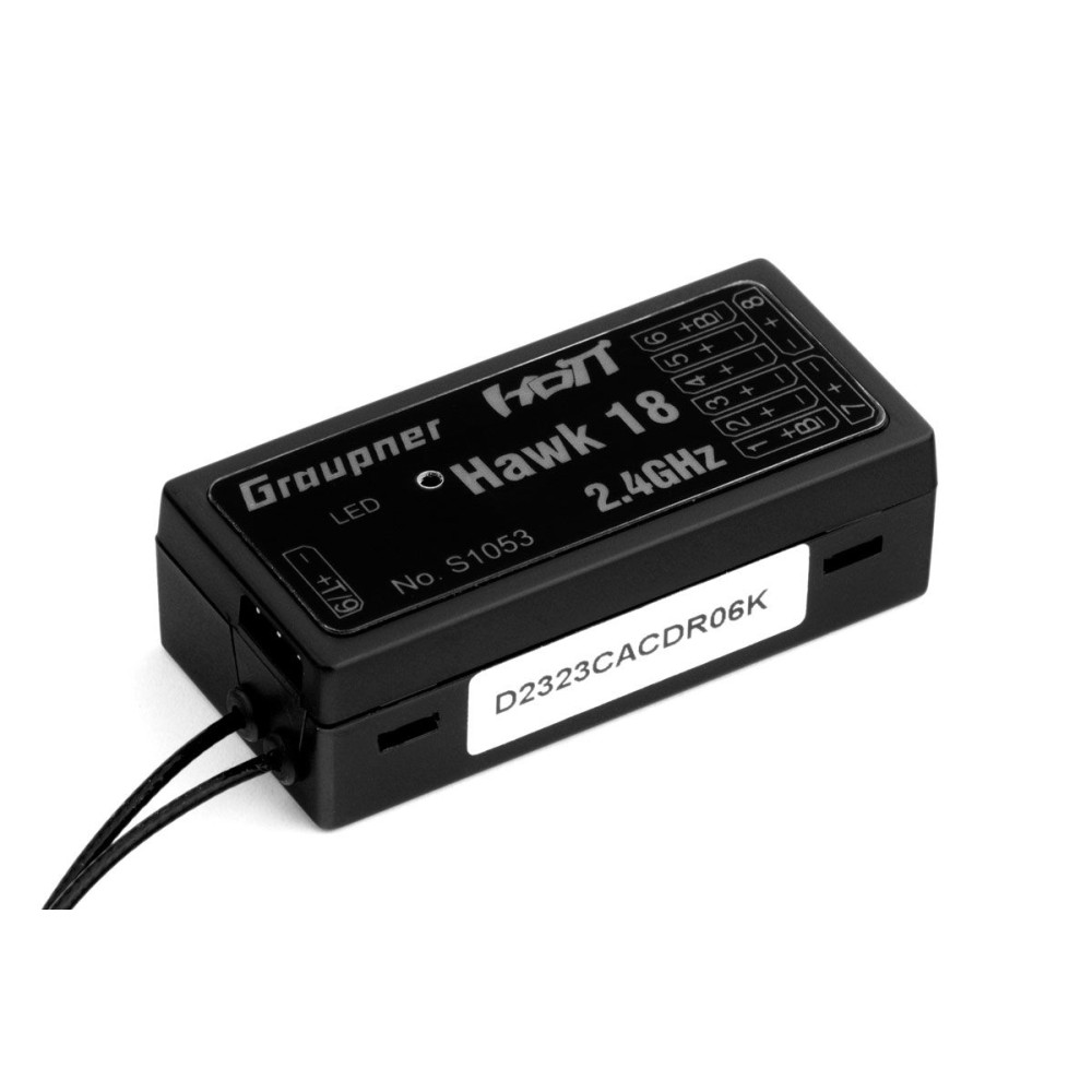 S přijímačem Hawk 18 představuje Graupner výkonný 9kanálový přijímač s integrovaným 3-osým gyroskopem a obzvláště vibracím odolným 3-osým senzorem zrychlení, diverzitními anténami, režimem vario a režimem polohy pro modely s pevnými křídly nebo záchranným režimem a režimem polohy pro vrtulníky.