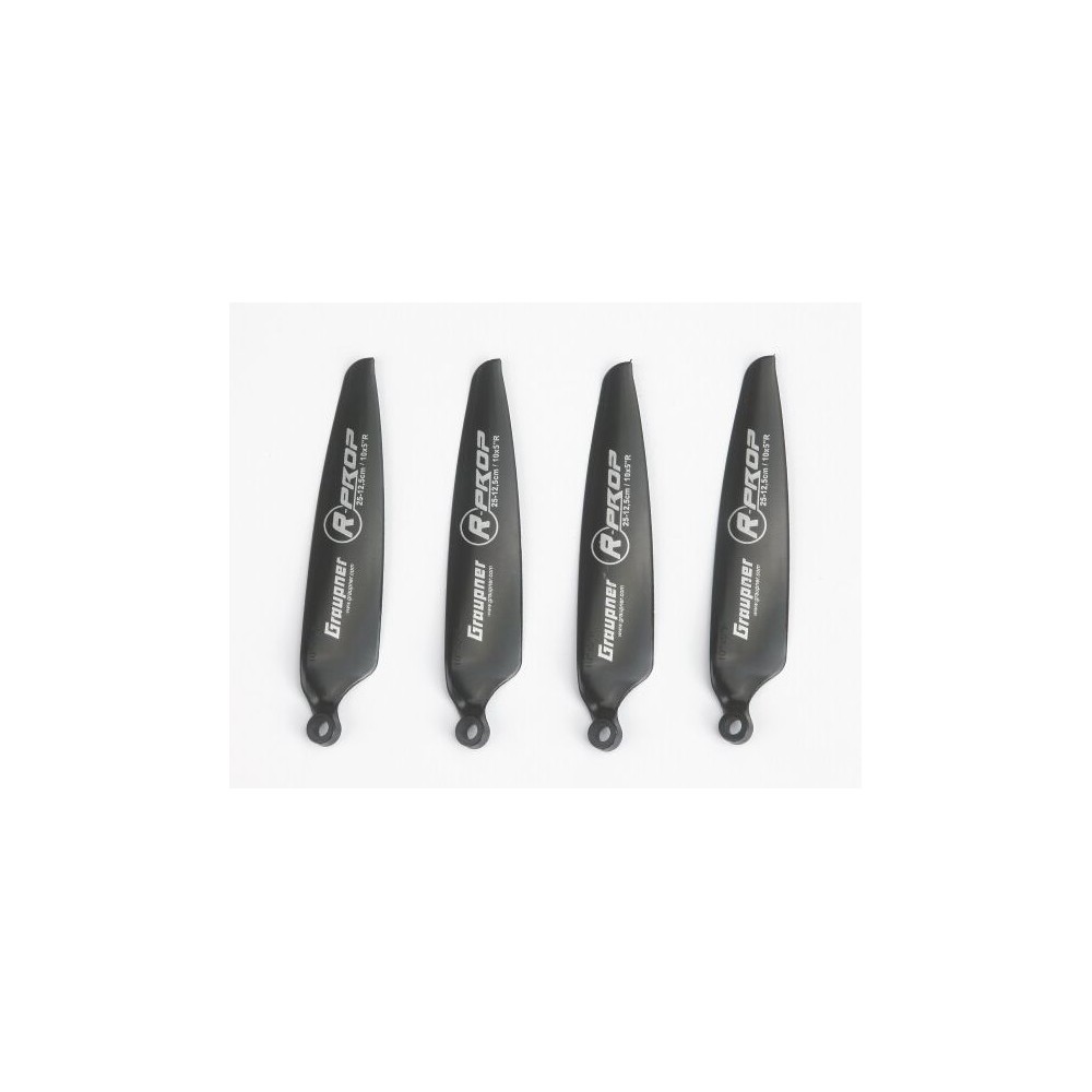 Pravotočivé sklopné plastové vrtule plněné skelnými vlákny, rozměr a stoupání 10/5 palců, 25/12,5mm, vrtání 5,2mm, váha 3,5 g.