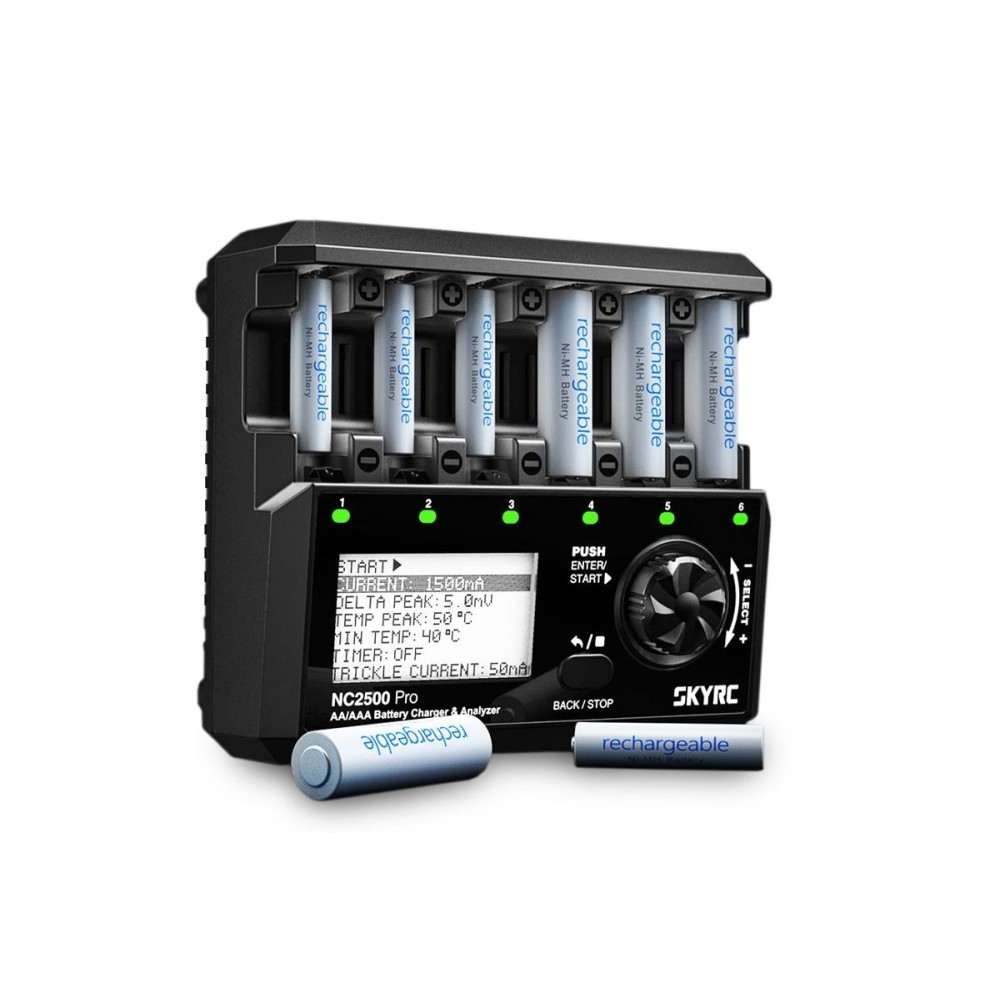 Multifunkční šestikanálový nabíječ/vybíječ zajišťující kompletní a opravdu komfortní péči o vaše AA (tužkové) a AAA (mikrotužkové) akumulátory NiCd a NiMH. Inteligentní programy nabíječe se o vaše akumulátory postarají od úvodního formování malým proudem, přes pravidelné nabíjení nebo vybíjení až po testování napětí, vnitřního odporu a oživování článků dlouhodobě provozovaných nebo naopak dlouhodobě uložených. NC2500 Pro je navíc vybaven napájecím/nabíjecím USB výstupem podporujícím protokol QC3.0 a výstupem pro zabíhání stejnosměrných elektromotorů. Součástí sady nabíječe je i síťový zdroj.