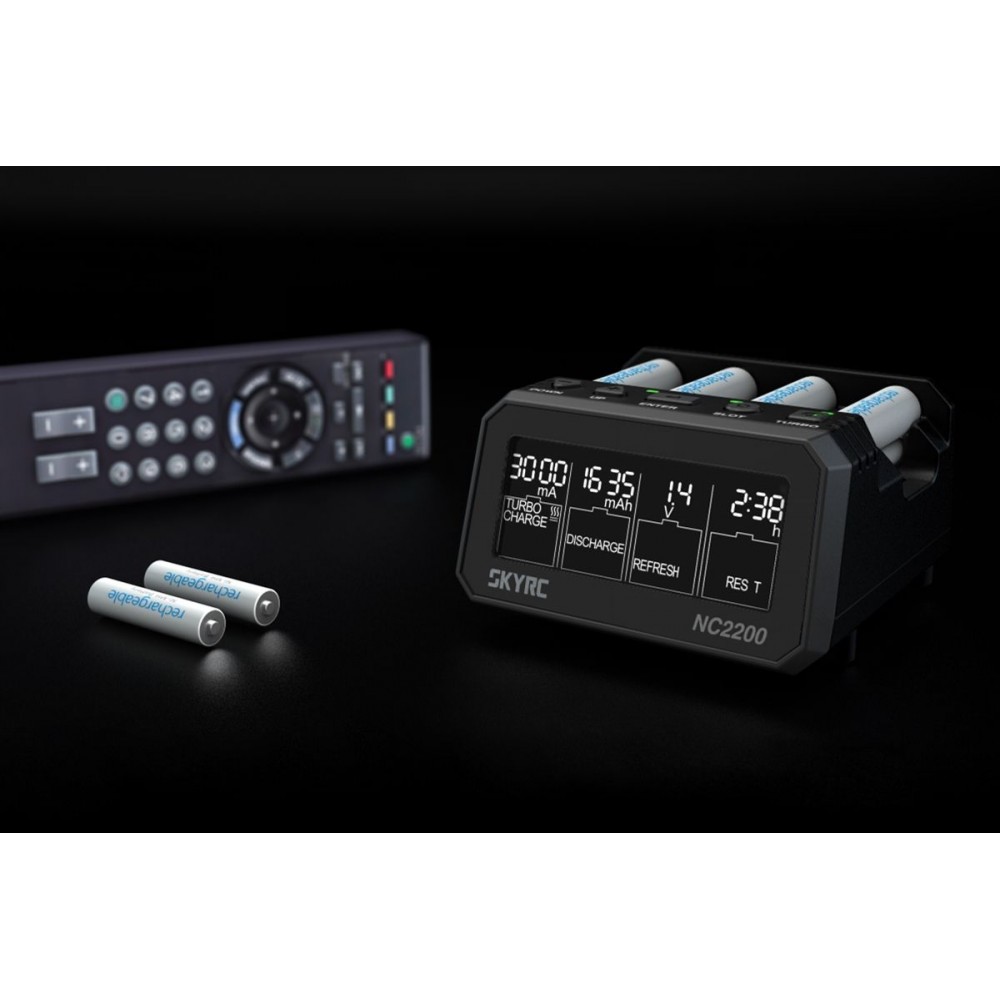 NC 2200 umožňuje současně – a přitom nezávisle - nabíjet nebo vybíjet až čtyři různé tužkové nebo mikrotužkové akumulátory. Parametry probíhajícího procesu (nabíjecí/vybíjecí proud, nabitý/vybitý náboj, napětí akumulátoru, vnitřní odpor, uplynulý čas) jsou průběžně zobrazovány pro všechny kanály na LCD displeji. NC2200 umožňuje také synchronní provoz kanálů – stačí vložit 2-4 akumulátory stejného druhu, zadat parametry nabíjení nebo jiného provozního režimu pro první kanál a poté jedním dlouhým stiskem tlačítka odstartovat stejný proces i pro všechny ostatní „obsazené“ kanály.
