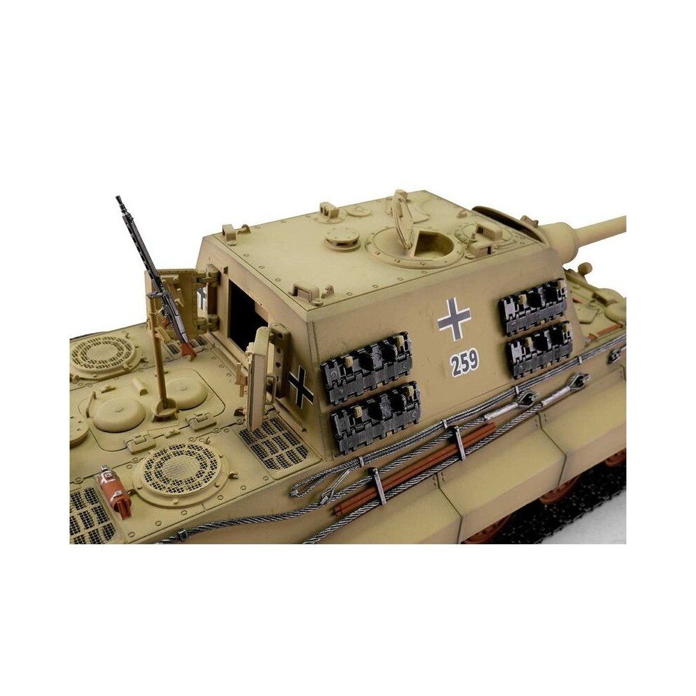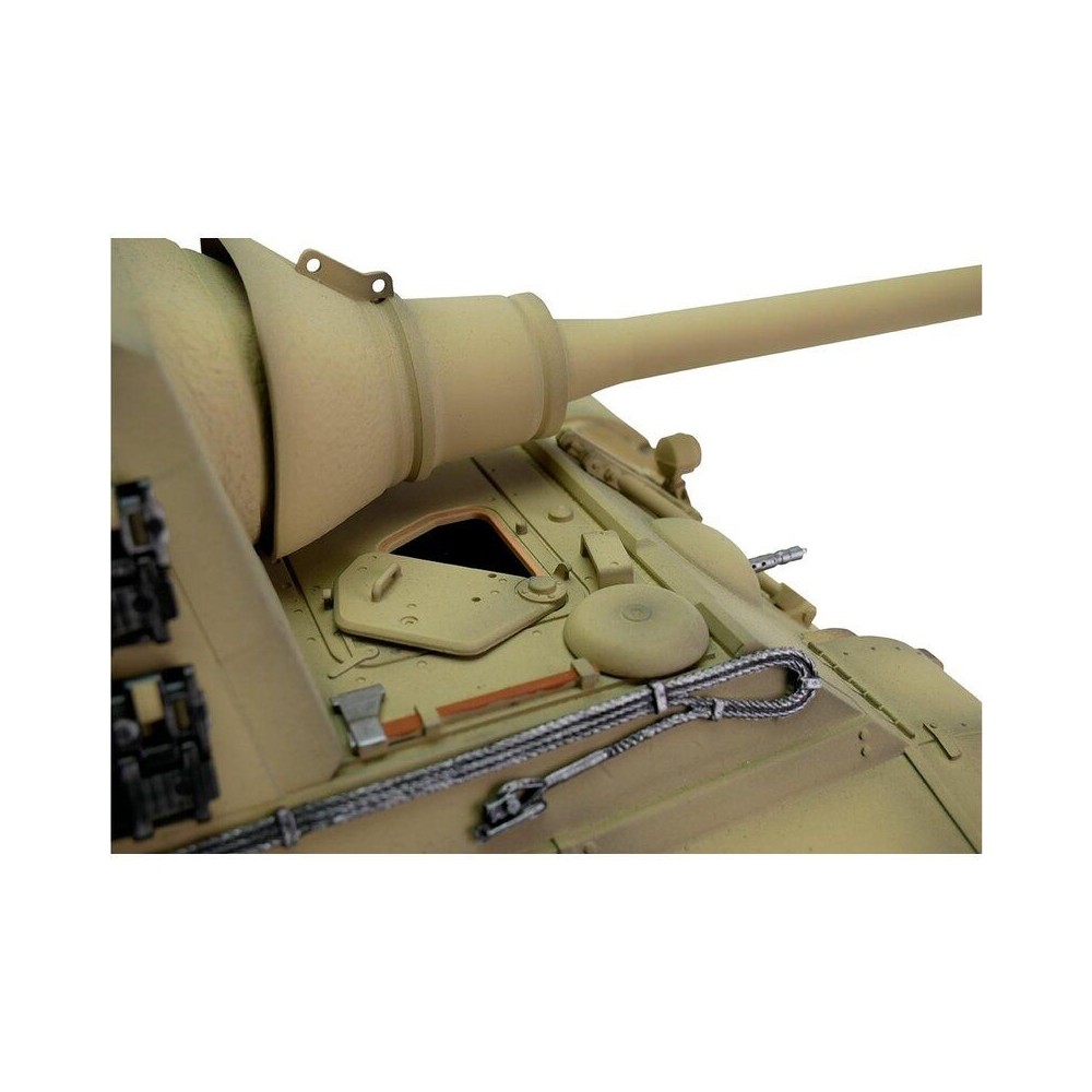 Výkonný model tanku má RC ovládání 2,4 GHz. Vozidlo je vybaveno BB Airosft systémem, takže jsou možné bitvy jako v reálném boji. Motory s optimalizovaným točivým momentem dodávají modelu Jagdtiger přesnou a plynulou jízdu. Kovové převody s robustními převody a vylepšeným převodem zajišťují větší výkon. Díky proporcionálnímu ovládání se můžete s tankem přiblížit velmi pomalu a plynule zvyšovat rychlost. Jagdtiger se pohybuje dopředu a dozadu, také s otočením doleva a doprava. Lze jej také na místě otočit doleva nebo doprava. Můžete zvednout a spustit dělo a otočit věž o 360 stupňů. Realistický zážitek završují různé zvuky motoru a kouř z výfuku.