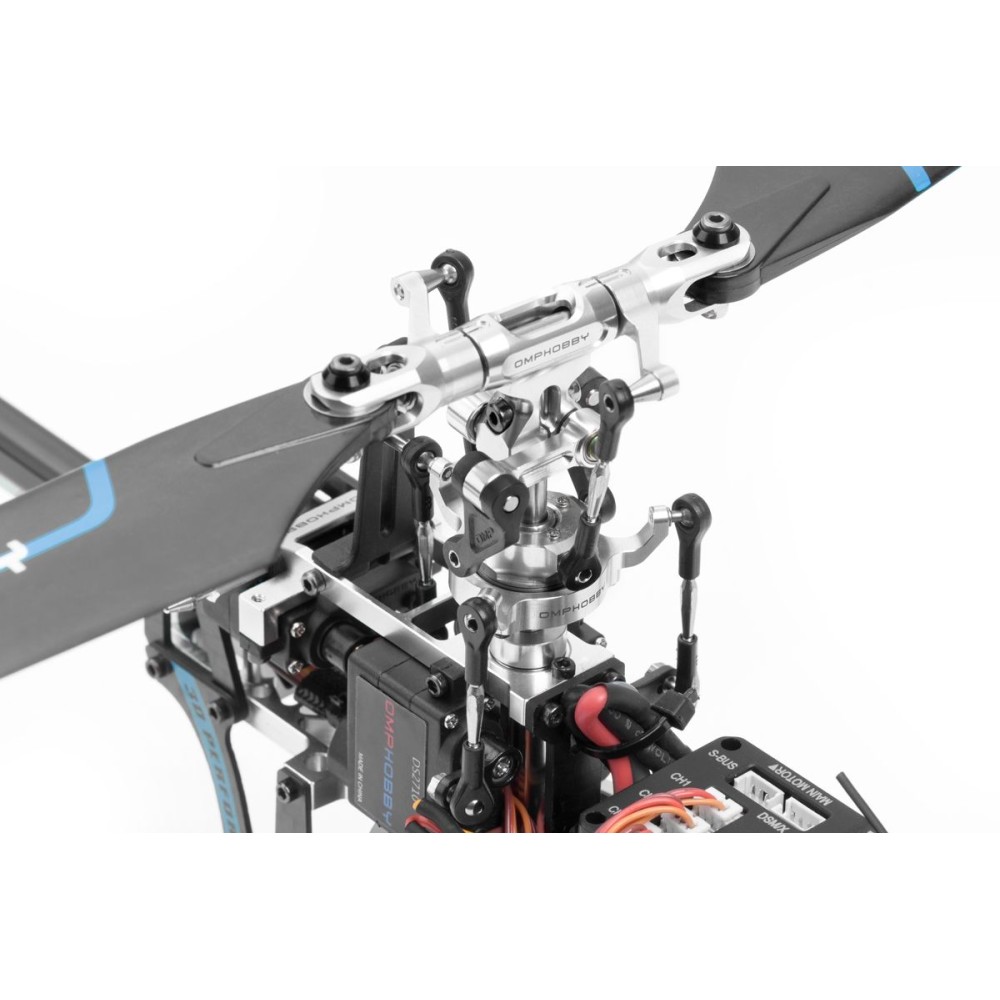 Robustní 4 mm hlavní hřídel je uložena v kuličkových ložiscích. Deska cykliky je duralová stejně jako rotorová hlava s unašeči listů. Díky 3G flybarless systému a elektronickému CCPM je rotorová hlava velmi jednoduchá. Unašeče listů nosného rotoru jsou nádhernou miniaturou unašečů „velkých" RC vrtulníků - se všemi těmi kuličkovými ložisky a tlumícími vložkami!