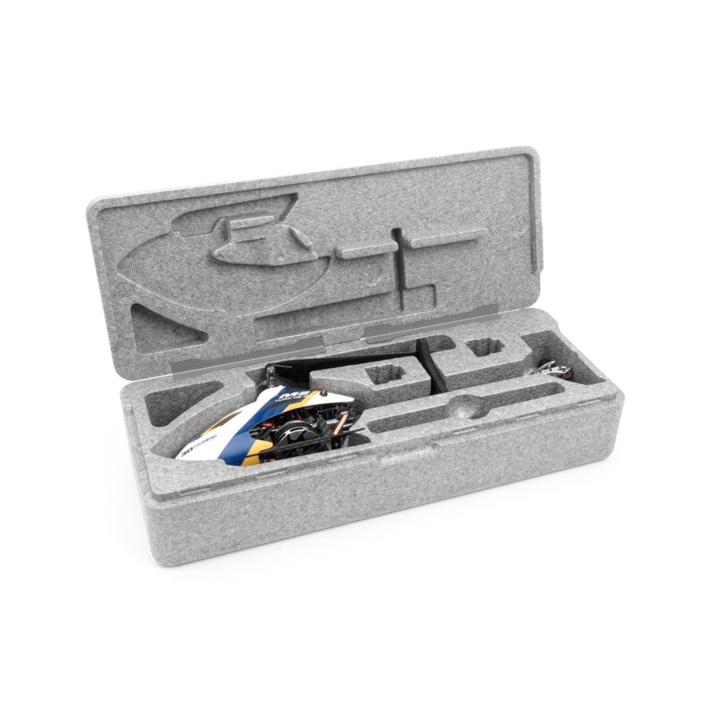 3D minivrtulník s CCPM deskou cykliky 120° a 3G flybarless stabilizačním systémem (přepínatelné režimy stabilizace/3D akrobacie) s nosným rotorem o průměru 434 mm poháněný střídavým motorem s regulátorem s funkcí governoru. ARF sada včetně LiPo akumulátoru umožňující použití RC soupravy s S.BUS kompatibilním miniaturním přijímačem.