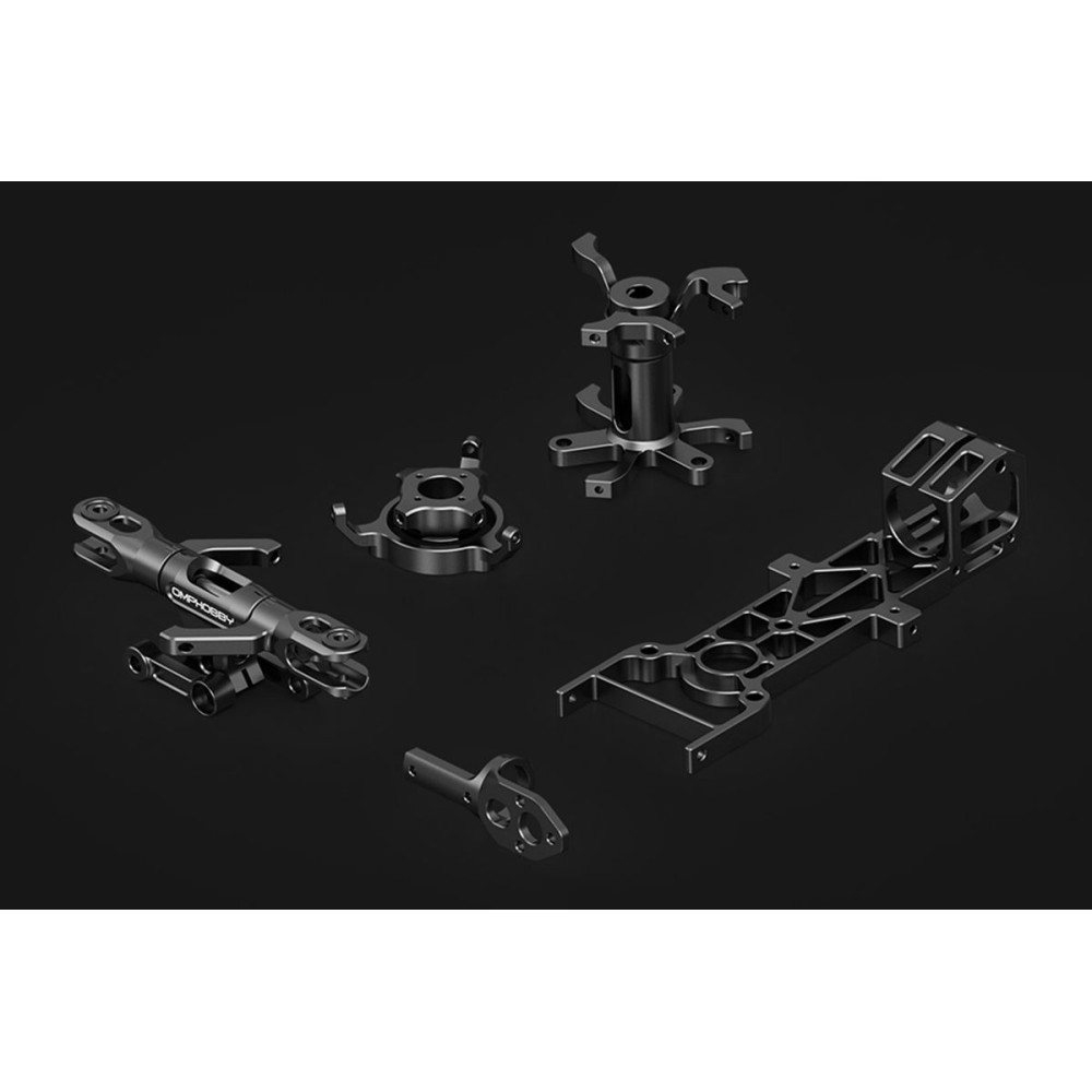 Elektroniku vrtulníku tvoří inteligentní řídící jednotka s novou 3G flybarless řídící jednotkou OFS3 s integrovaným elektronickým regulátorem otáček s funkcí governoru pro motor nosného rotoru a regulátorem pro motor vyrovnávacího rotoru; a tři 10g digitální serva DS2710MG (1,65 kg.cm, 0,08 s/60°) ovládající CCPM (120°) mixovanou desku cykliky. Pro řízení vrtulníku budete potřebovat aspoň šestikanálovou RC soupravu s miniaturním přijímačem s S.BUS portem (nebo také DSM2/DSMX a nově rovněž s obousměrným CRSF protokolem s telemetrií - podporovány jsou systémy TBS Crossfire, Tracer a ExpressLRS). Pro obyčejné poletování nemusí být vysílač ani počítačový (všechny potřebné mixy obstarává řídící jednotka), stačí jen 4 kanály „na kniplech“ a pátý kanál s dvoupolohovým přepínačem pro přepínání režimů řídící jednotky se stabilizací a 3D. Samozřejmě, pro plnohodnotné klasické a 3D létání je třeba počítačový vysílač s nastavitelnými 2-3 letovými režimy s aspoň pětibodovými křivkami kolektivu pro visení a akrobacii a dalším režimem pro autorotaci. Díky rozsáhlým možnostem nastavování řídící jednotky v mobilní aplikaci (včetně detailního nastavování PIDF regulačních smyček) je možné většinu nastavení, které dříve vyžadovaly pokročilou počítačovou RC soupravu, provést na vašem mobilu v aplikaci (pro operační systémy iOS i Android). Můžete, ale nemusíte - řídící jednotka je dodávána přednastavená; její základní parametry je v případě potřeby možné dolaďovat také pomocí programovacího tlačítka a indikačních LED na řídící jednotce, jako tomu bylo u starších verzí řídících jednotek OMPHOBBY.