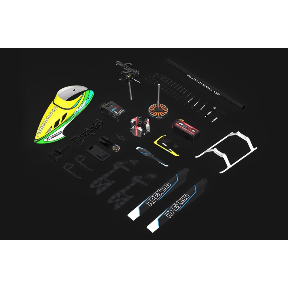 Vrtulník je dodáván kompletně sestavený s přednastavenou řídící jednotkou, takže stačí vrtulník vybalit, připojit váš S.BUS/DSM2/DSMX/CRSF kompatibilní přijímač, nabít pohonný akumulátor, podle podrobného návodu s názornými obrázky nastavit váš vysílač, zkontrolovat všechny funkce vrtulníku - a můžete vzlétnout!