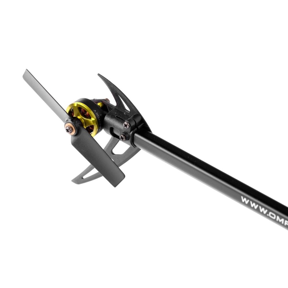 Elektroniku vrtulníku tvoří inteligentní řídící jednotka s integrovanou 3G flybarless řídící jednotkou, elektronickým regulátorem otáček s funkcí governoru a tři digitální pikoserva DS2045 s kovovými převody ovládající CCPM (120°) mixovanou desku cykliky. Pro řízení vrtulníku budete potřebovat aspoň šestikanálovou RC soupravu s miniaturním přijímačem s S.BUS portem (nebo také DSM/DSMX). Pro obyčejné poletování nemusí být vysílač ani počítačový (všechny potřebné mixy obstarává řídící jednotka), stačí jen 4 kanály „na kniplech“ a pátý kanál s dvoupolohovým přepínačem pro přepínání režimů řídící jednotky se stabilizací a 3D. Samozřejmě, pro plnohodnotné klasické a 3D létání je třeba počítačový vysílač s nastavitelnými 2-3 letovými režimy s aspoň pětibodovými křivkami kolektivu pro visení a akrobacii a dalším režimem pro autorotaci.