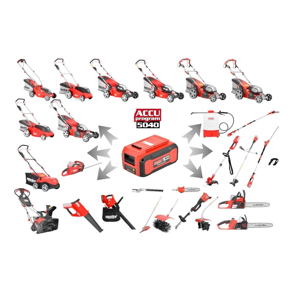Akumulátor 005050B je určen pro napájení produktů z řady Accu program 5040. V rámci Accu programu je nabízena ucelená řada produktů HECHT, které jsou napájeny stejným typem akumulátorů. Tyto akumulátory jsou vzájemně zaměnitelné, liší se pouze kapacitou, tedy množstvím energie, kterou jsou schopny uložit. Vyšší kapacita samozřejmě znamená i delší dobu provozu akumulátorem napájeného stroje na jediné nabití. Tento akumulátor je součástí některých akumulátorových sekaček z řady Accu programu 5040. Volitelně je možné jej pořídit k dalším produktům v rámci accu programu, které jsou dodávány bez akumulátoru. Stejně tak může být vhodné pořídit druhý akumulátor v případě, že nevystačíte pro rozsah vykonávané práce pouze s jediným akumulátorem. Vzhledem k tomu, že jsou tyto typy akumulátorů nabíjeny na externí nabíječce, není problém jeden akumulátor nabíjet, zatím co je druhý právě používán pro napájení stroje.