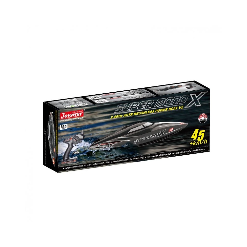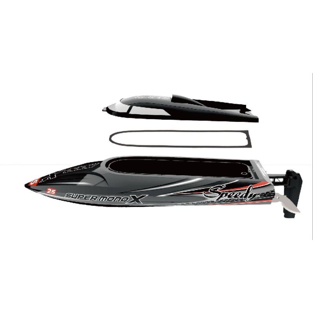 Model rychlostní lodě s plastovým trupem 360mm (celková délka 420 mm) dodávaný se střídavým vodou chlazeným motorem, vodou chlazeným 30A regulátorem, servem a dvoukanálovou 2,4GHz RC soupravou. Balení neobsahuje pohonný akumulátor (dopor. akumulátor 11,1V 1300-1800mAh 35C) a nabíječ. Model dosahuje rychlosti 45km/h.