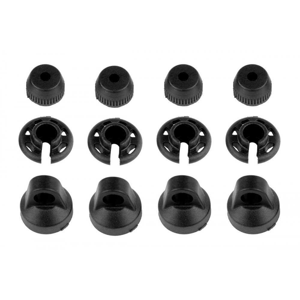 Plastové díly olejových tlumičů, čepičky, podložky, 4+4+4 ks.