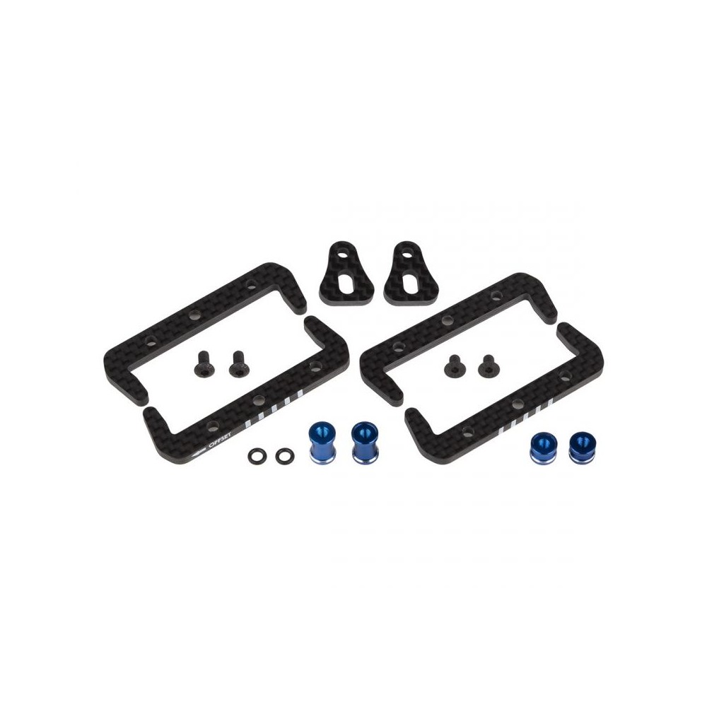 Tato sada nahrazuje plastové díly stavebnice karbonem a modře eloxovaným hliníkem pro tovární vzhled. Tištěné značky jasně ukazují polohu akumulátoru a směr posunu. Součástí balení jsou standardní i nízkoprofilové sloupky, které se přizpůsobí různým tloušťkám akumulátorů.
