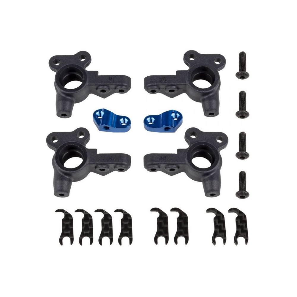 Factory Team set předních těhlic s nastavitelným KPI pro RC10B7. Funkce, která byla původně používána u prototypu RC10B7 pro přesné nastavení hodnoty KPI, je nyní přístupná všem uživatelům. Toto nastavení umožňuje optimalizovat váš model B7 pro jakýkoli povrch - od hlíny s nízkou přilnavostí až po hliněné, astro a kobercové tratě s vysokou přilnavostí.