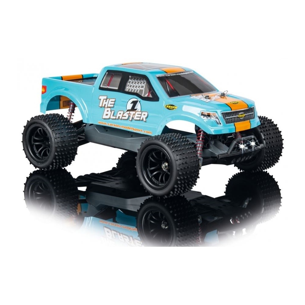 The Blaster je rychlý teréňák z řady Fast-Entry společnosti CARSON Modelsport, který může dosáhnout rychlosti 35 km / h. Dálkové ovládání 2,4 GHz. Nově navržený podvozek je pro jakýkoliv drsný terén. Elektronická jednotka chráněná proti stříkající vodě umožňuje jízdu i na mokré zemi. Zajímavým prvkem je propracovaný design karoserie s čísly řidičů a předními a zadními LED diodami. Vysoce přilnavé, terénní pneumatiky.Pohon zadních kol. Vysoce výkonný akumulátor Liion. Baterii lze upevnit do modelu zespodu, takže není nutné odstraňovat plášť karoserie. Balení 100% RTR včetně všech potřebných baterií.