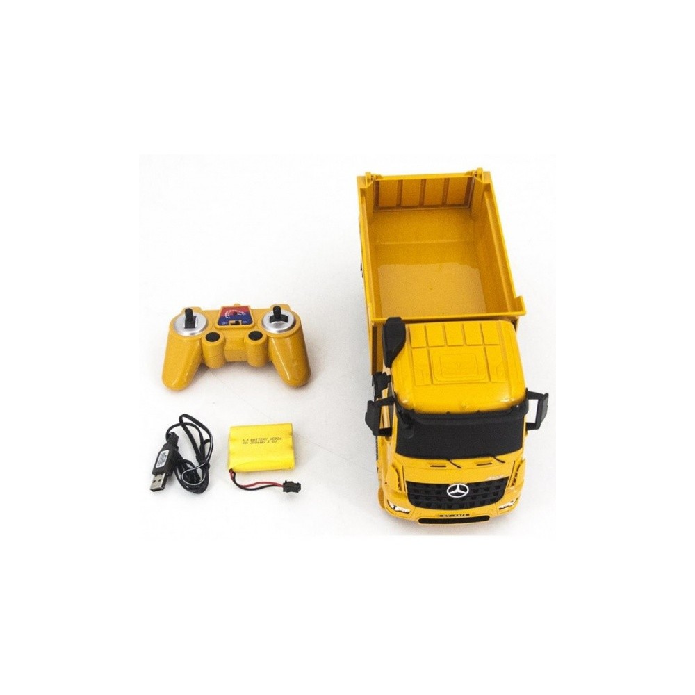 RC model 1:26 je licencovanou kopií sklápěče Mercedes Benz od Double Eagle. Sklápěč-E570-003 je dokonalým znázorněním originálního žlutého vozidla s velkými koly. Tento plně funkční stroj určený pro práce je ideálním dárkem pro každého nadšeného řidiče. Model má pohon na zadních kolech a může jezdit: dopředu, dozadu, otáčet se do stran… Je vybaven funkcí: dálkového zvedání/spouštění lehkého přívěsu, automatického vypnutí – v případě dlouhodobé nečinnosti a světelnými/zvukovými efekty.