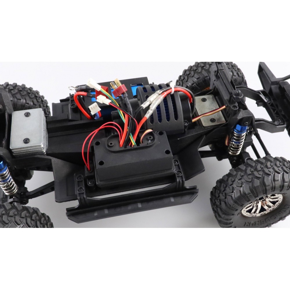 Potřebujete-li pořádný stroj do náročného terénu, je DIRT CLIMBING BEAST PICK-UP CRAWLER 4WD 1:10 RTR 4x4 tou nejlepší volbou. Jak již název napovídá model má náhon na všechny 4 kola, a díky svému kvalitnímu a výkonnému motoru dokáže vyvinout rychlost až 15 km/h. V kombinaci s perfektně zpracovaným ocelovým odpružením a velkými offroadovými koly s kovovými ložisky je DIRT CLIMBING BEAST PICK-UP ultimátním strojem do těch nejnáročnějších terénů. Při zdolávání nejrůznejších překážek velmi oceníte elektroniku chráněnou proti stříkající vodě a také ochranný rám se střešním nosičem, jenž nejen Váš model ochrání při případné kolizi, ale na nosiči je také možné přepravovat malé předměty. Pomyslnou třešničkou na dortu jsou přední a zadní LED světlomety, díky kterým budete moci jezdit až do pozdních večerních hodin. SUV se řídí volantovým ovladačem s digitálně proporcionálním ovládáním, které pracuje na 2.4 GHz. Model je dodáván v edici 100% RTR, což znamená, že v balení je vše potřebné pro provoz, včetně baterií do ovladače. Stačí už jen rozbalit, nabít a vyrazit zdolávat ten nejšílenější terén.
