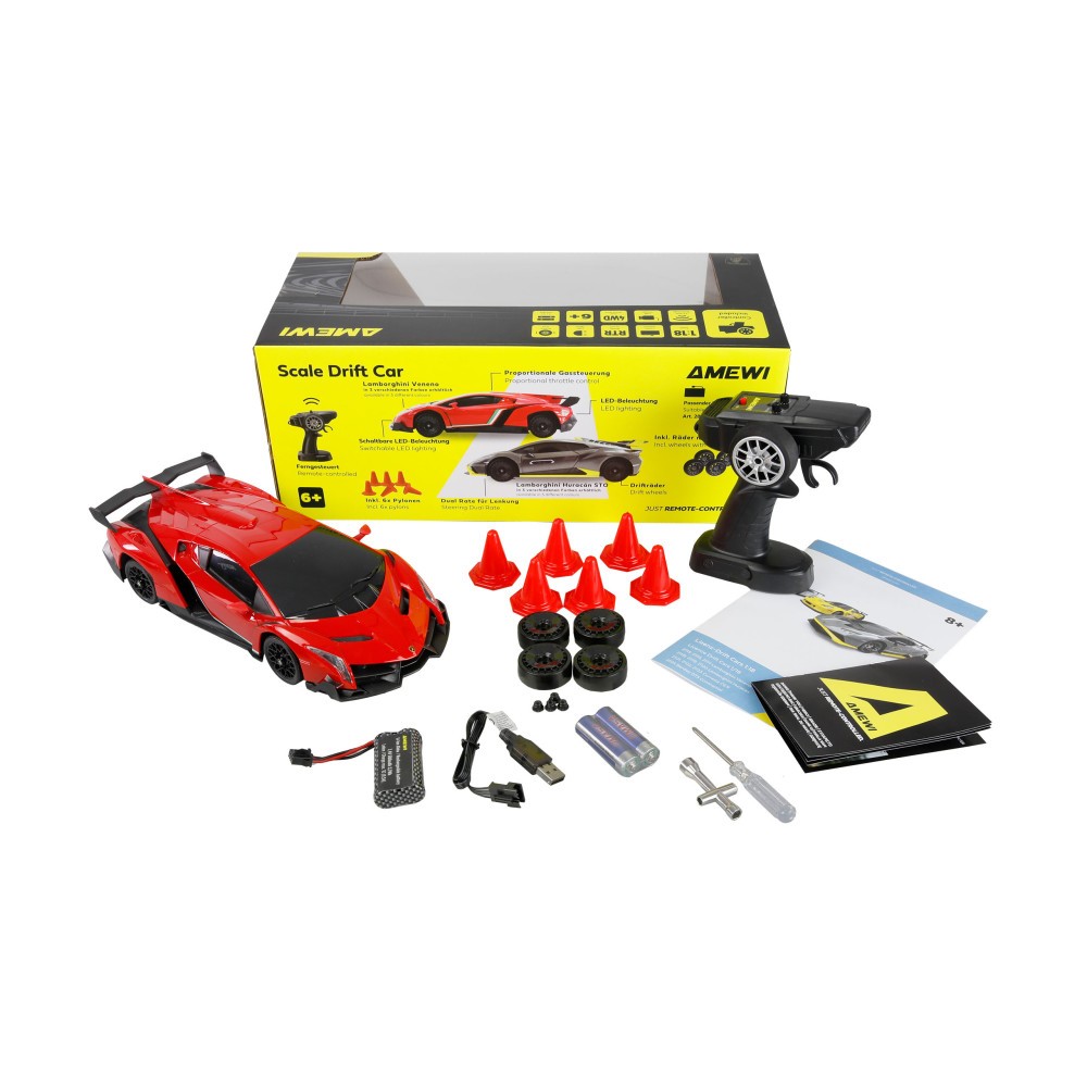 Lamborghini Veneno RC Drift Car 4WD LED 1:18 RTR licencované proporcionální jízda červené