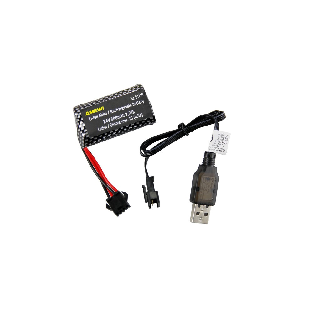 Baterie: Li-Ion 2S 7,4V 500mAh 15C kulaté články HBX 4pinové 52x28x15 mm, 39 g