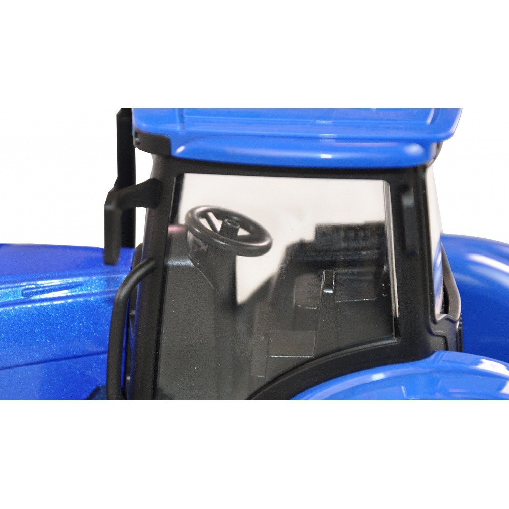 RC traktor v měřítku 1:24, vhodný pro děti od 6 let, přesvědčí svou funkčností vhodnou pro děti, která podněcuje fantazii: Učení hrou: Radlicí integrovanou na dlouhém výložníku lze ručně naklápět, spouštět a zvedat. Traktor pak dopraví materiál z A do B pomocí ovládacích prvků. Díky zaobleným hranám je hraní za všech okolností bezpečné. Díky demo funkci aktivované stisknutím tlačítka prostřednictvím dálkového ovládání lze předvést jízdní schopnosti zemědělského stroje bez jakéhokoli zásahu z vaší strany. Kromě toho je tažné zařízení nejen k dispozici na traktoru, ale lze jej také výškově nastavit: to znamená, že lze skutečně připojit různé přepravní vozíky, aby bylo při hraní ještě větší vynalézavost. Traktor na hraní upoutá pozornost díky LED světlům vpředu v bílé barvě. Zapínají se pomocí dálkového ovládání, svítí nepřetržitě během jízdy vpřed; v opačném směru blikají. Traktor je charakteristicky tvarován dvěma velkými zadními koly. Řízení funguje přes menší přední kola. Jak je u moderních zemědělských strojů obvyklé, uzavřená kabina řidiče symbolizuje účinnou ochranu před prachem, hlukem a horkem. Uvnitř jsou vidět detaily jako sedadla, volant a joystick. Na vnější straně jsou schůdky s madly a naznačená zpětná zrcátka. Vpravo od kabiny řidiče je reprodukován klasický traktorový výfuk.
