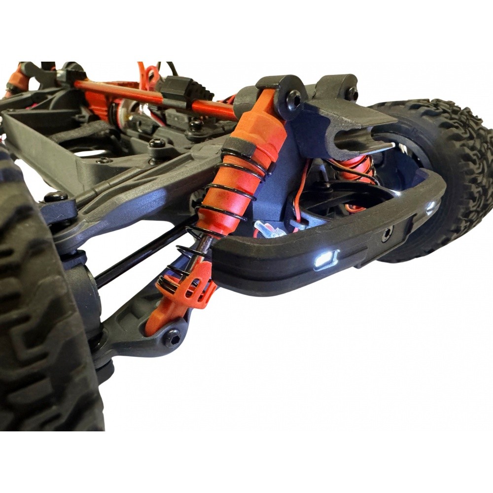 Ať už jste zkušený řidič nebo teprve začínáte, FastTruck Mini je ideální volbou. Díky 2,4 GHz dálkovému ovládání a nastavitelné maximální rychlosti můžete snadno kontrolovat své vozidlo a přizpůsobit jeho výkon vašim dovednostem. LED osvětlení na náraznících přidává na vizuálním dojmu a zvyšuje bezpečnost při jízdě ve tmě nebo za soumraku.