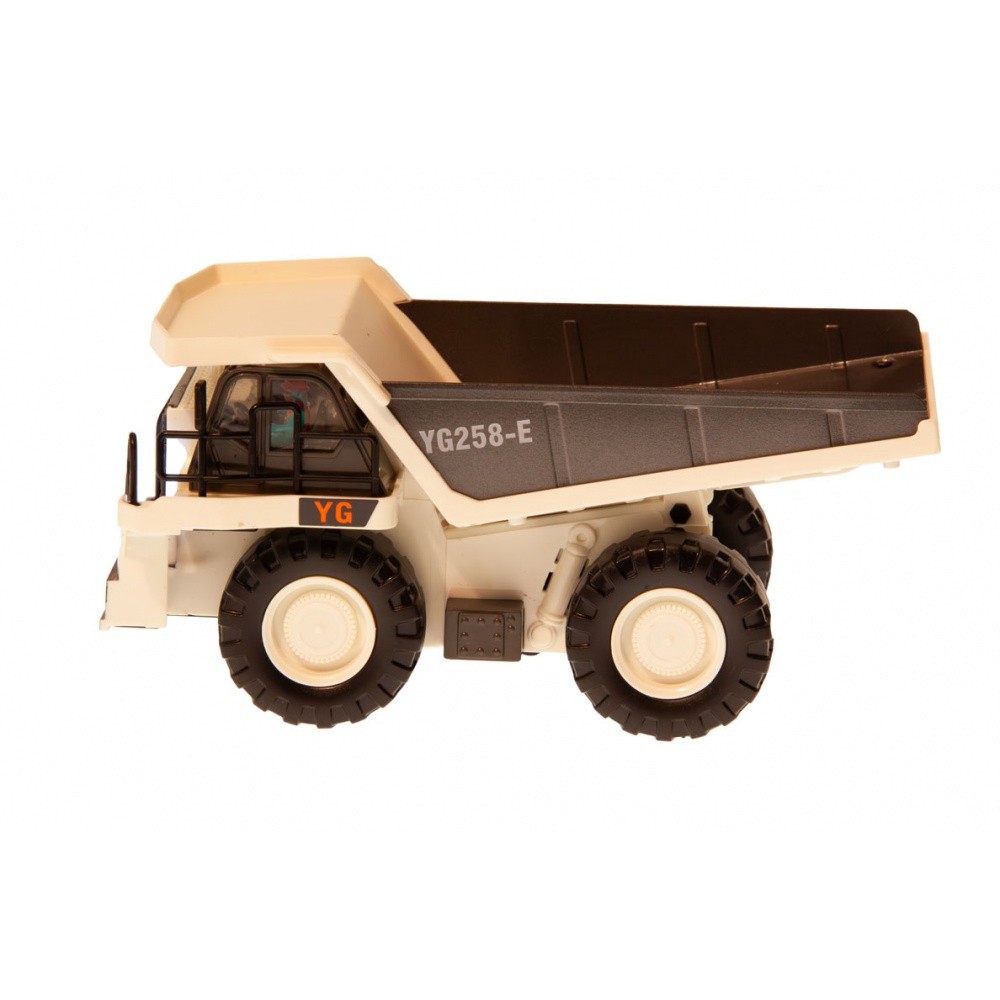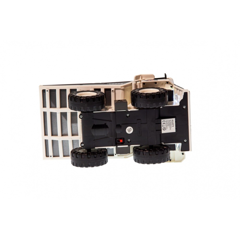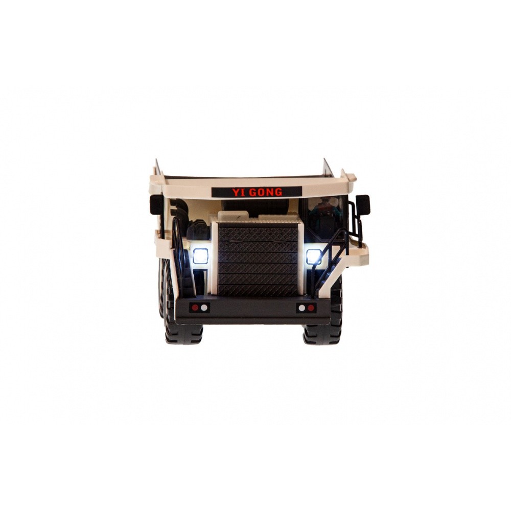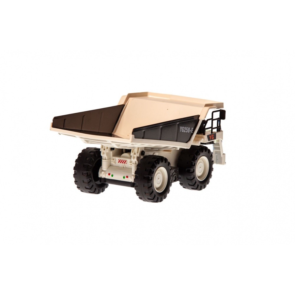 RC sklápěč v měřítku 1:24, kovové části, 2,4 GHz, 9 kanálů, zvukový a světelný modul, barva bílá.