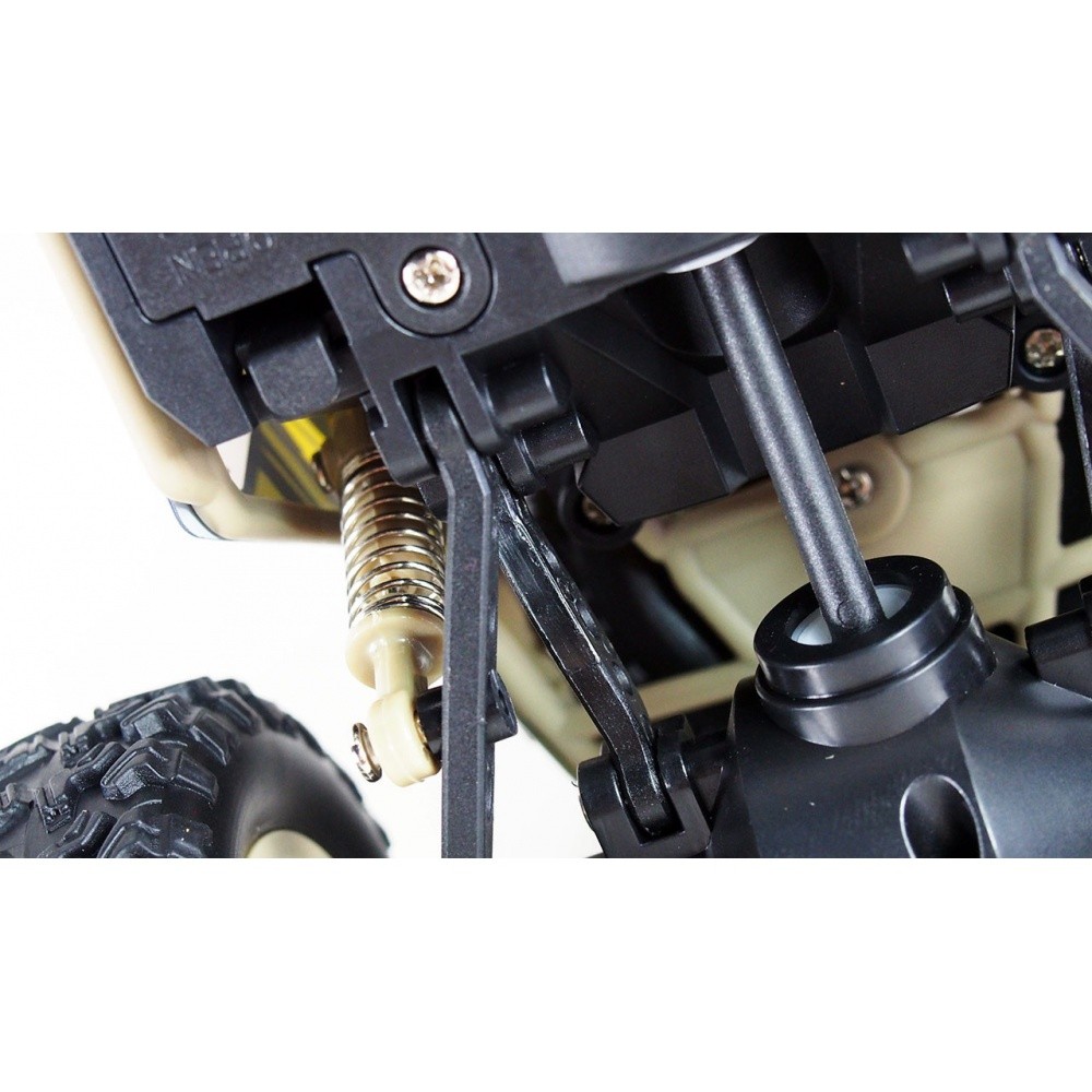 Maximální dosažitelná rychlost je asi 20 km / h. Ovládání přes 2,4 GHz vysílač. Model má pohon 4x4. Navíc je odolný proti stříkající vodě, a proto je vhodný pro venkovní použití do téměř jakéhokoliv terénu. RTR balení. Díky jednoduchému ovládání je vhodné pro začátečníky.