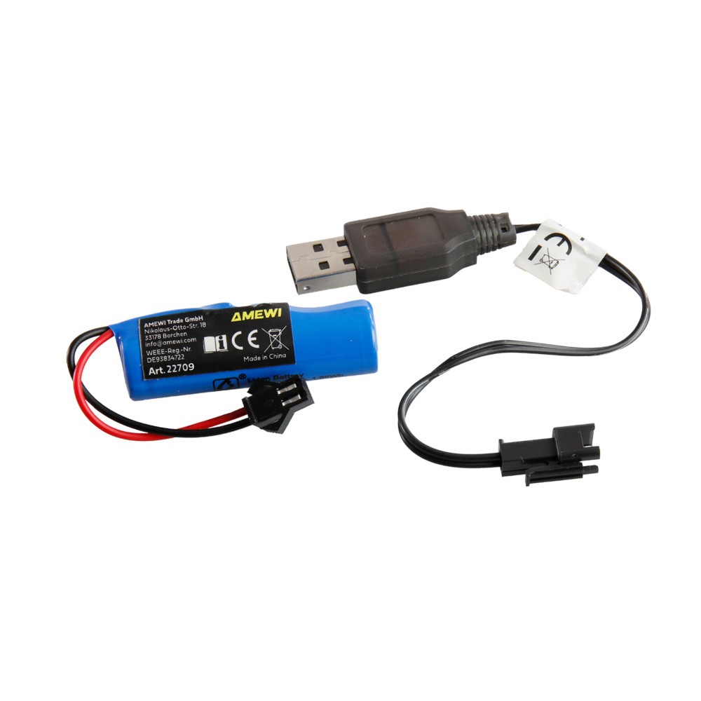 Baterie: Li-Ion 1S 3,7 V 500 mAh válcový článek, konektor HBX, 52x15 mm, 17 g