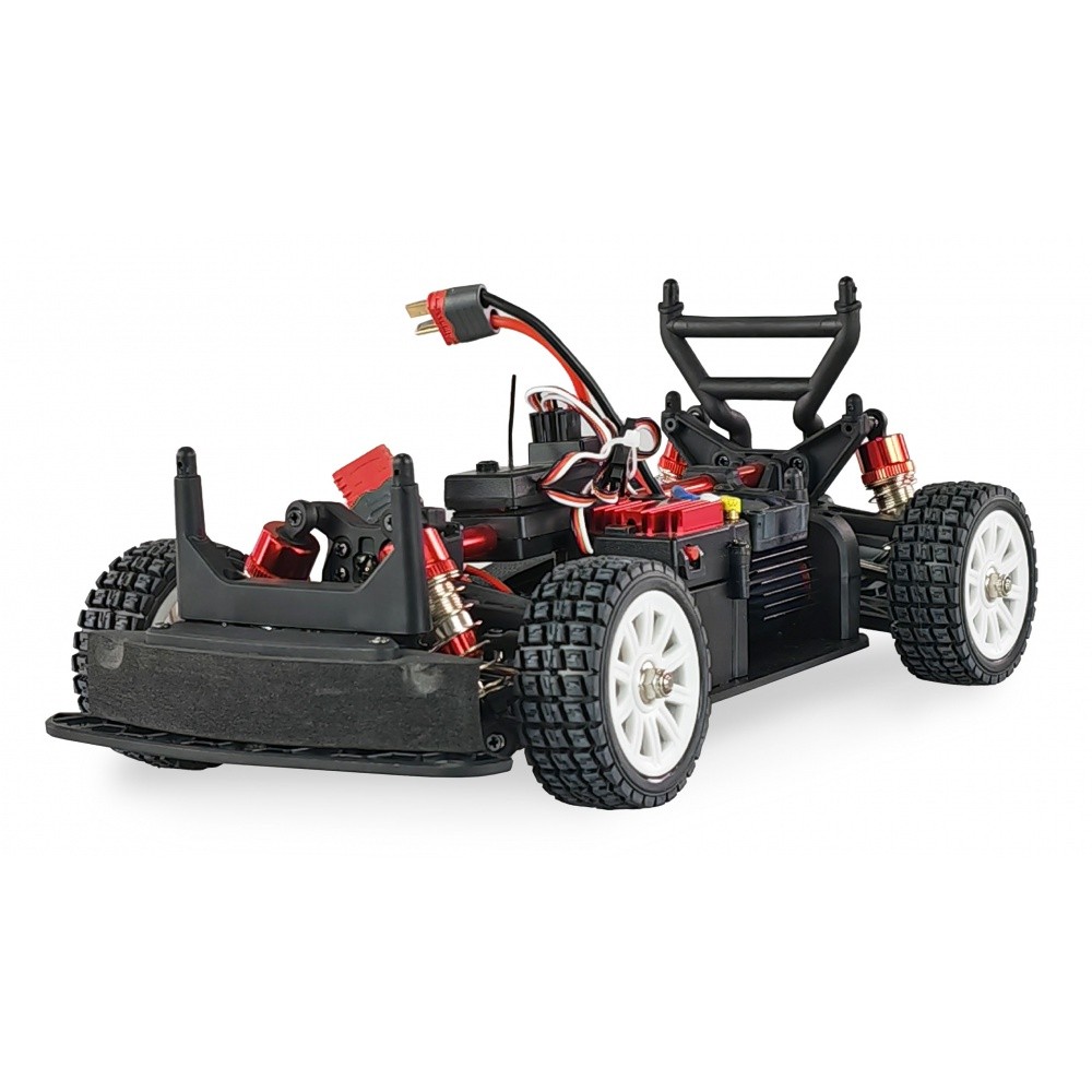 Pro optimální ovládání a vyladění je tento model vybaven nastavitelnými kovovými tlumiči s tlakem oleje, flexibilním odpružením a systémem jízdní stability s gyroskopem. Vestavěný 45A ESC umožňuje citlivou akceleraci, a díky LED osvětlení, které nabízí různé režimy, si můžete užít drifty a závody i za zhoršených světelných podmínek. Digitální 17g servo řízení zajistí precizní kontrolu v zatáčkách a stabilní směrovou stabilitu.