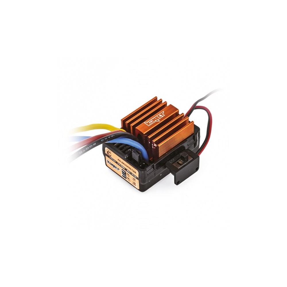 Regulátor s trvalým zatížení 40A je vodotěsný a má BEC, který poskytuje 6V s napájením 2A, a proto je dostatečný pro všechny oblasti použití běžné v tomto měřítku. Pomocí přepínacích můstku lze snadno přepínat mezi provozem LiPo a NiMH, není nutné žádné časově náročné programování. Zpětný chod lze také v případě potřeby jednoduše deaktivovat, což může být výhodou, zejména při závodění.
