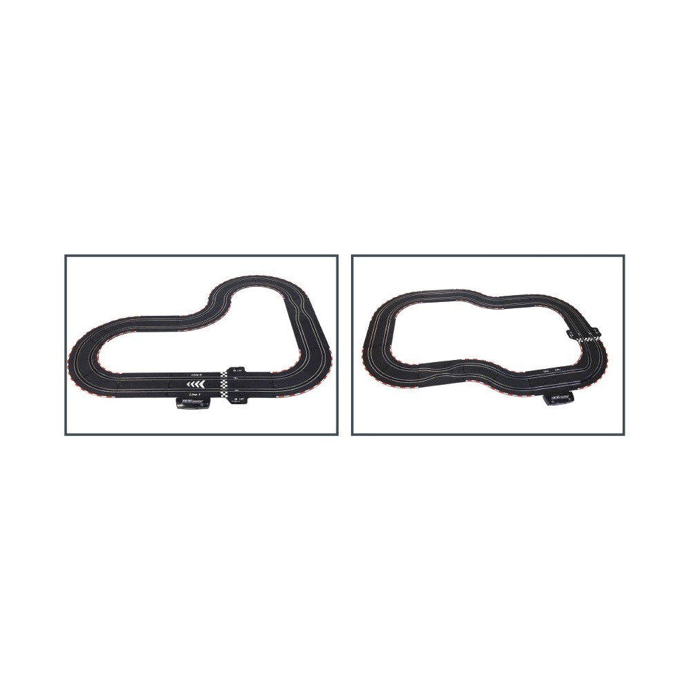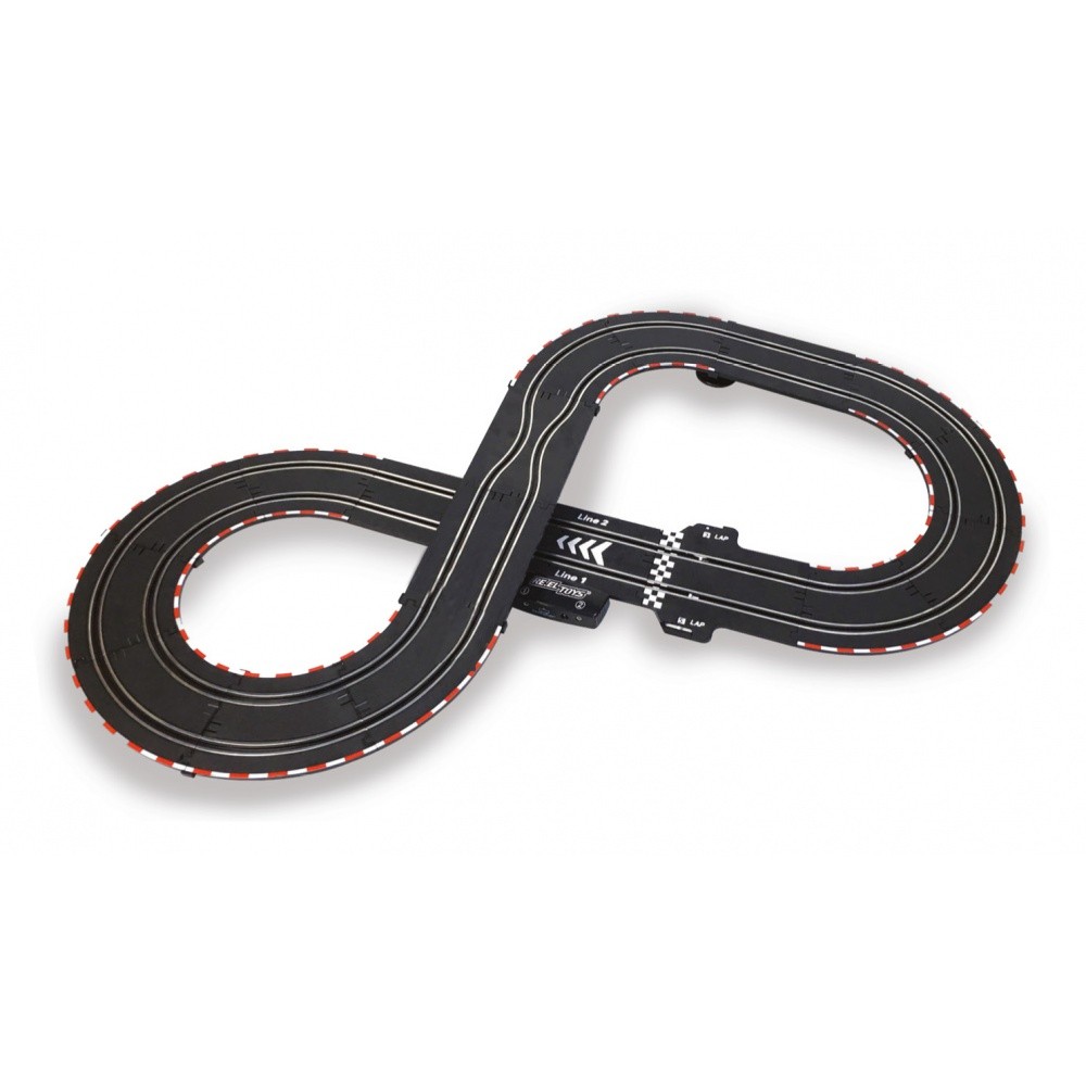 3 metry dlouhá dráha se 3 možnými okruhy. 2 licencované vozy v měřítku 1:43 s LED světly a funkcí turbo. Postavte si vlastní trať a dejte život bláznivým závodům, aniž byste obsadili celý obývací pokoj! Součástí balení jsou dvě oficiálně licencovaná auta. Využij Turbo tlačítko a pořádně to rozjeď!