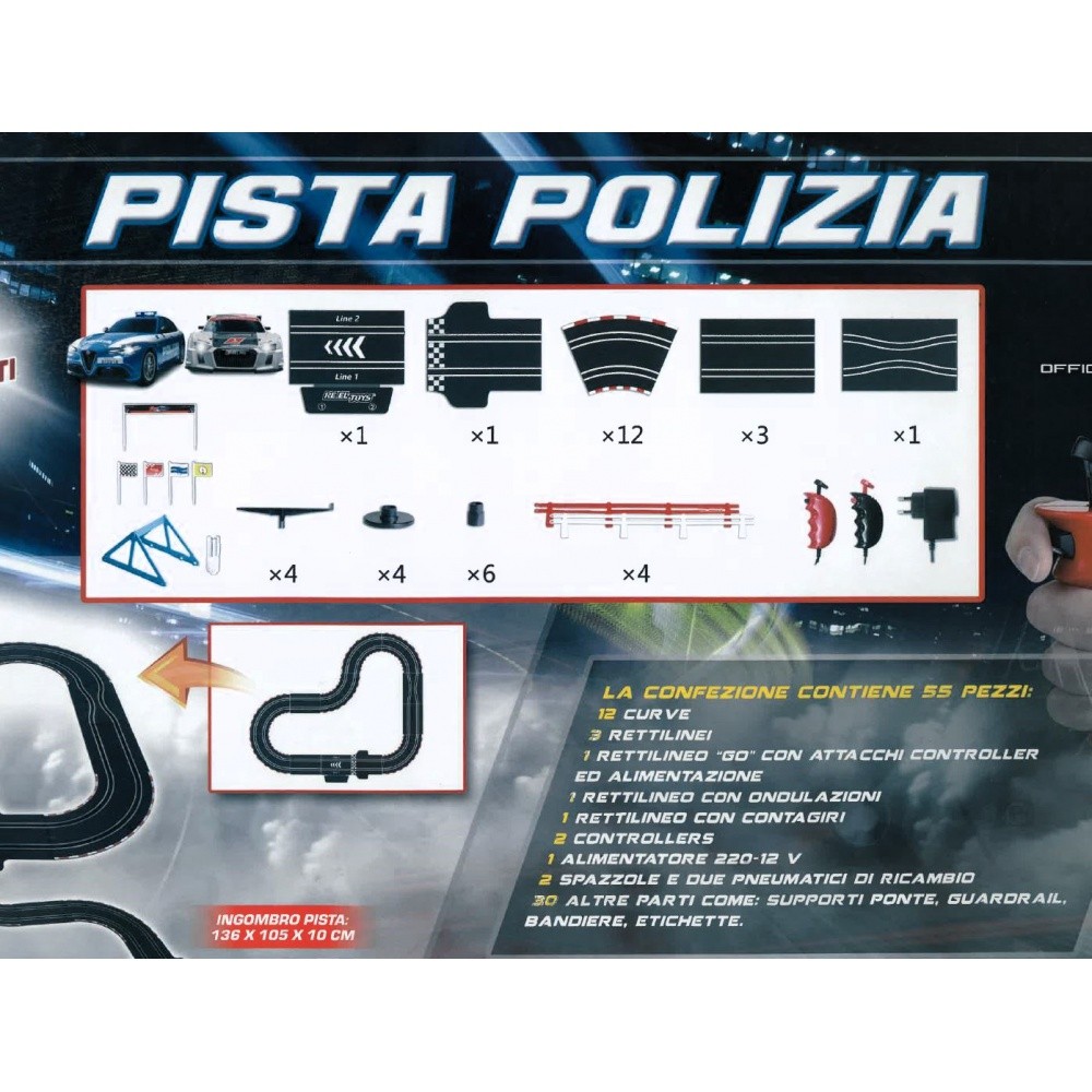 Autodráha RE.EL Toys POLIZIA 1:43,délka 3 metry, 3 varianty okruhu, LED světla, počítadlo kol.