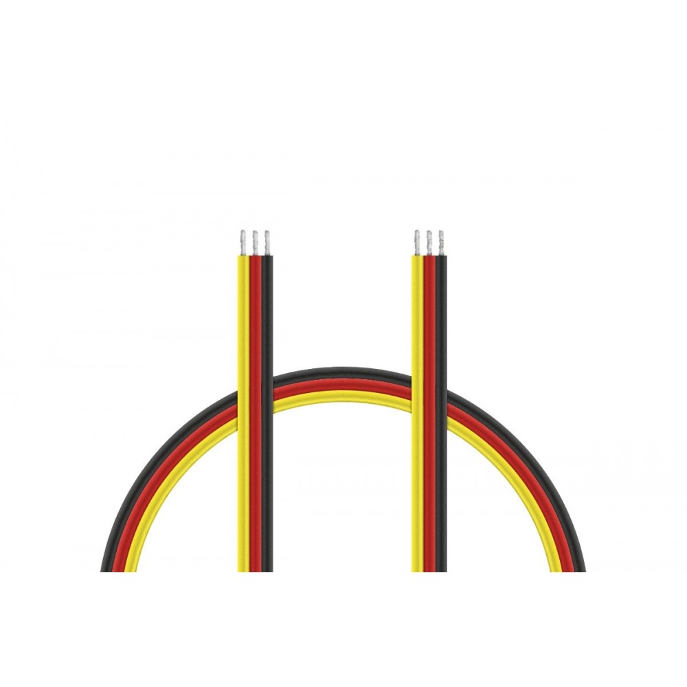 Plochý třížilový kabel tenký v barvách Hitec (černá/červená/žlutá) s PVC izolací, průřez vodičů 0,14 mm2. Vysoce ohebný, max. 48 V, 3A. Originální kabel používaný na servech Hitec.