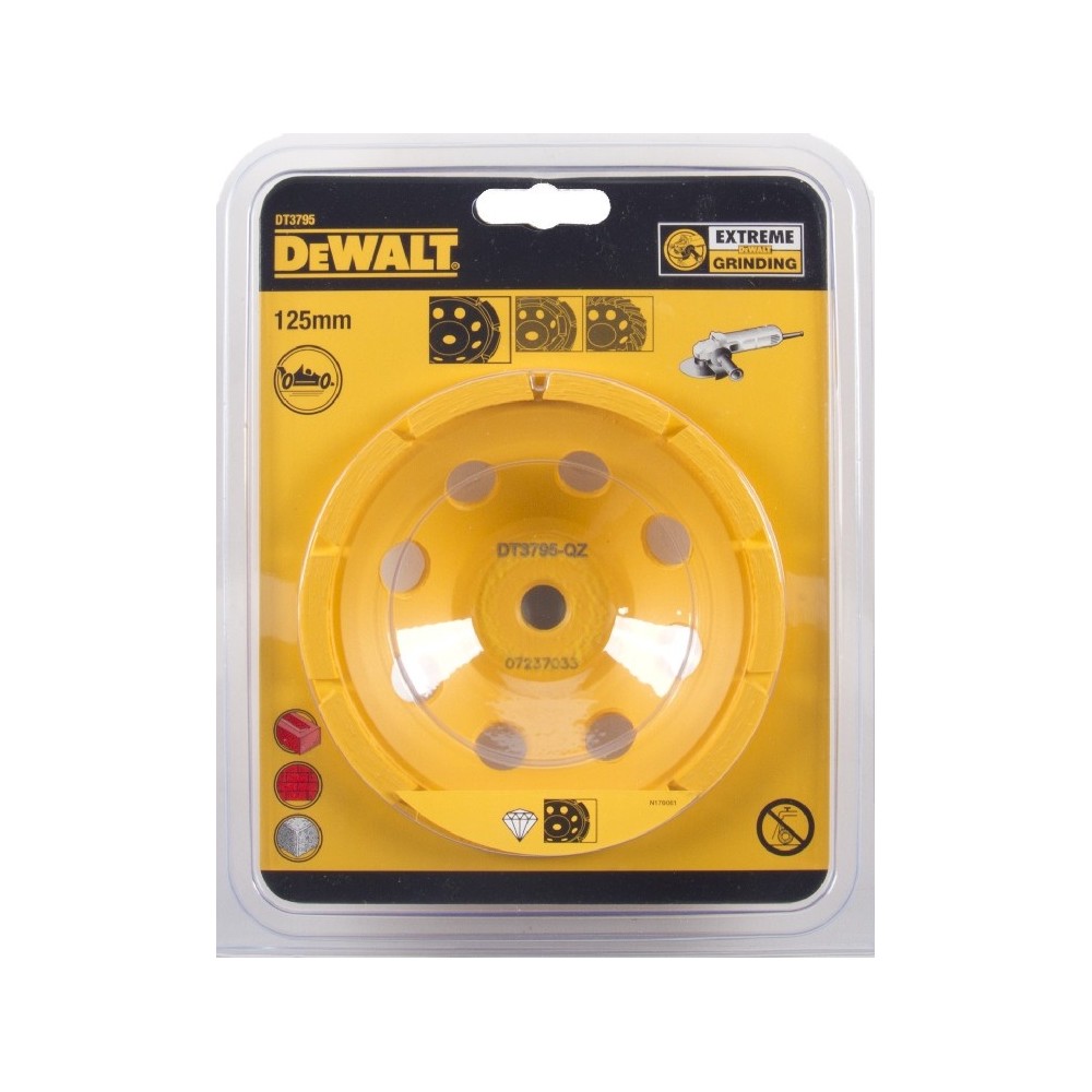 závit M14, žlutýDeWALT diamantový miskový kotouč na beton, 2 řady segmentů, 125 mm.