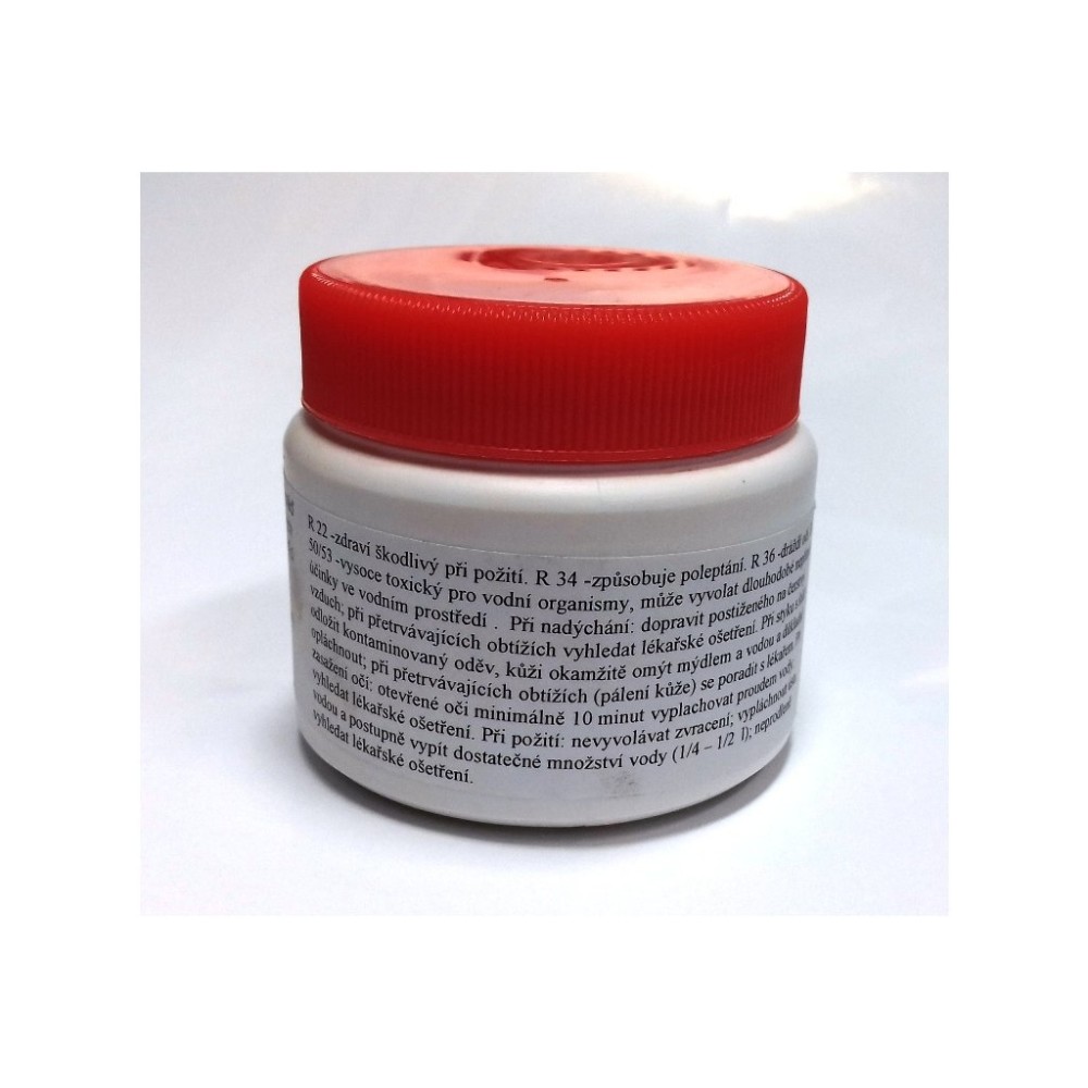 Nebezpečné komponenty k etiketování: chlorid zinečnatý. H314 Způsobuje těžké poleptání kůže a poškození očí. H335-H336 Může způsobit podráždění dýchacích cest. Může způsobit ospalost nebo závratě. H412 Škodlivý pro vodní organismy, s dlouhodobými účinky. Pokyny pro bezpečné zacházení. P101 Je-li nutná lékařská pomoc, mějte po ruce obal nebo štítek výrobku. P102 Uchovávejte mimo dosah dětí. P103 Před použitím si přečtěte údaje na štítku. P303+P361+P353 PŘI STYKU S KŮŽÍ (nebo s vlasy): Veškeré kontaminované části oděvu okamžitě svlékněte.Opláchněte kůži vodou/osprchujte. P305+P351+P338 PŘI ZASAŽENÍ OČÍ: Několik minut opatrně vyplachujte vodou. Vyjměte kontaktní čočky, jsou-li nasazeny a pokud je lze vyjmout snadno. Pokračujte ve vyplachování. P310 Okamžitě volejte TOXIKOLOGICKÉ INFORMAČNÍ STŘEDISKO/lékaře. P403+P233 Skladujte na dobře větraném místě. Uchovávejte obal těsně uzavřený. P405 Skladujte uzamčené. P501 Obsah/nádobu likvidujte v souladu s místními/národními/mezinárodními předpisy. Upozornění: Nebezpečí!