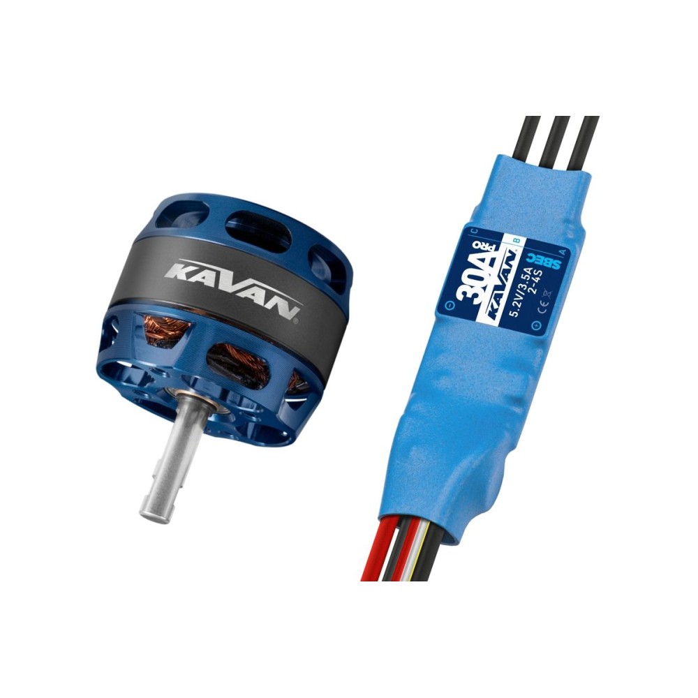 Combo set střídavého elektromotoru s rotačním pláštěm s regulátorem 30A pro modely letadel: větroň 1200g, trenér 1000g, akro 850g, 3D 750g, KV1200 ot./min na V, napájení Lixx 3-4s, hřídel 5 mm.