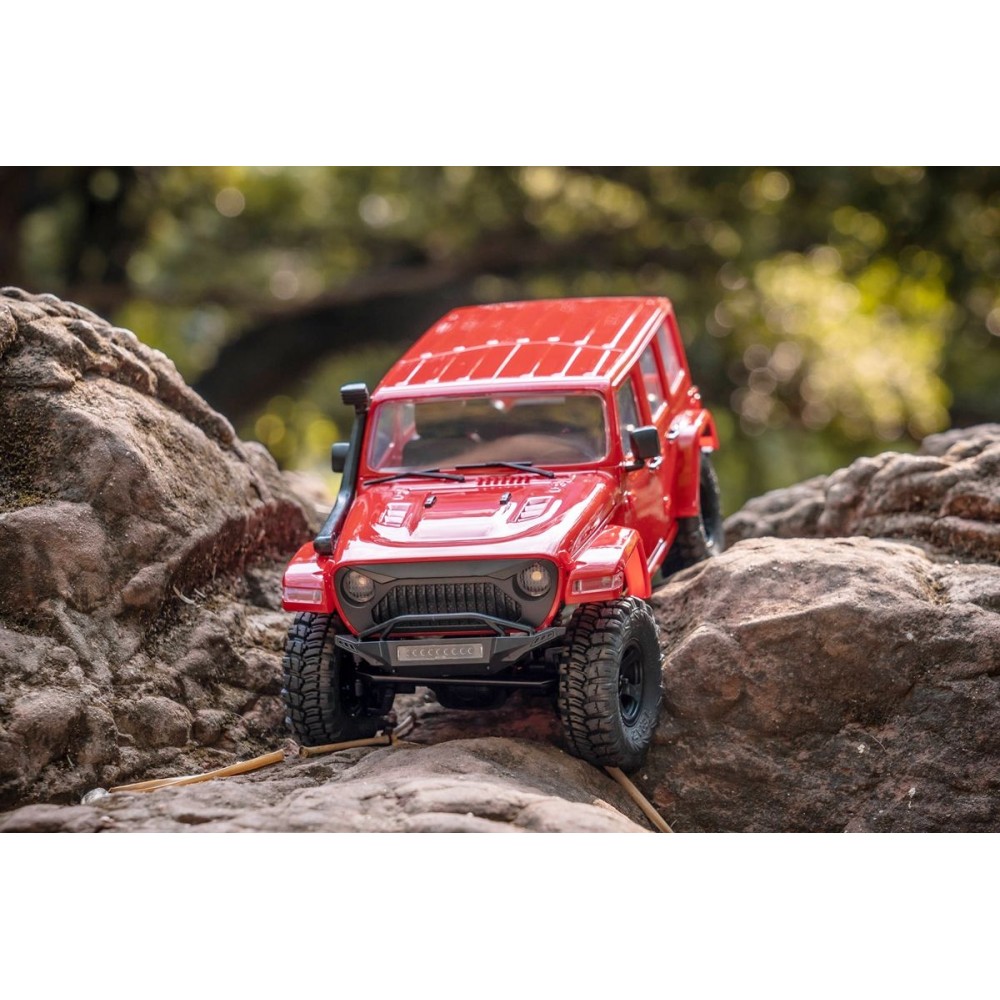 4WD off-road crawler v měřítku 1:18. Voděodolná elektronika, maketové detaily interiéru i exteriéru. Multifunkční ovládání světel. 2,4GHz RC souprava. Stejnosměrný motor 55T s vysokým točivým momentem. 7,4V 2S LiPo akumulátor. Až 30 minut jízdy.