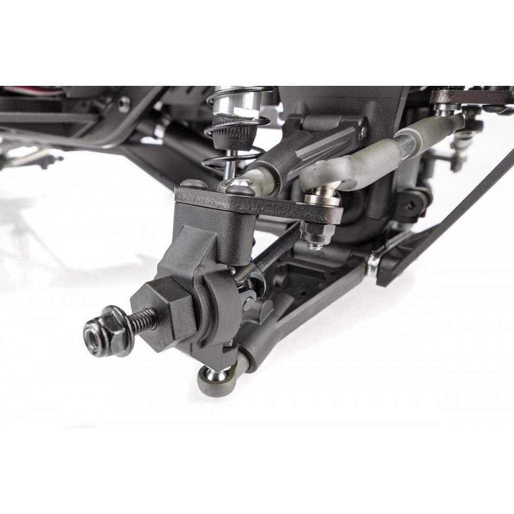 Zavěšení: Odolná vstřikovaná horní a dolní ramena zavěšení s optimalizovanými kulovými čepičkami poskytují maximální kloubovost zavěšení spolu s moderním vzhledem měřítka zavěšení terénních vozidel.