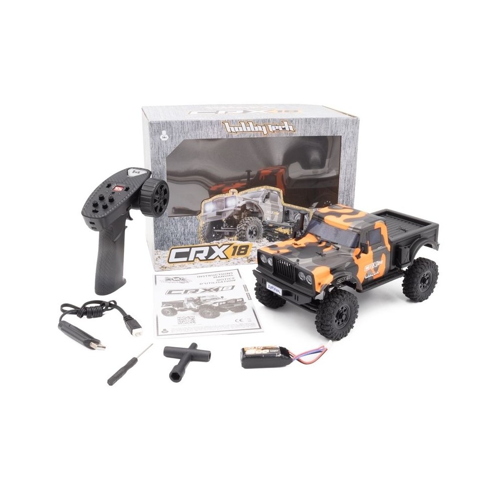 CRX18 může jezdit v interiéru i exteriéru. Je vhodný do malých i velkých prostor. Jeho terénní schopnosti jsou působivé. Na skalách: jeho lehkost, vyváženost a účinnost pneumatik mu umožňují překonávat neuvěřitelné překážky. Vysílačka umožňuje nastavit koncové výchylky (plyn a řízení). Nastavení plynu vám umožní vyladit jízdu a přizpůsobit rychlost CRX18 v terénu s překážkami.