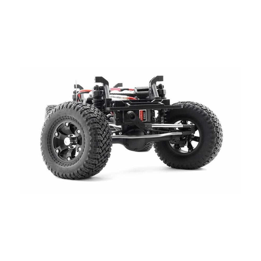 Kompletně sestavený RC crawler/expediční speciál se stejnosměrným motorem, voděodolnou 3v1 jednotkou (přijímač, regulátor, světelný modul) a servem řízení pro začínající jezdce. Set včetně 2,4Ghz RC vysílače. Bez pohonného akumulátoru a nabíječe. Modrá karoserie s chytrým systémem osvětlení.