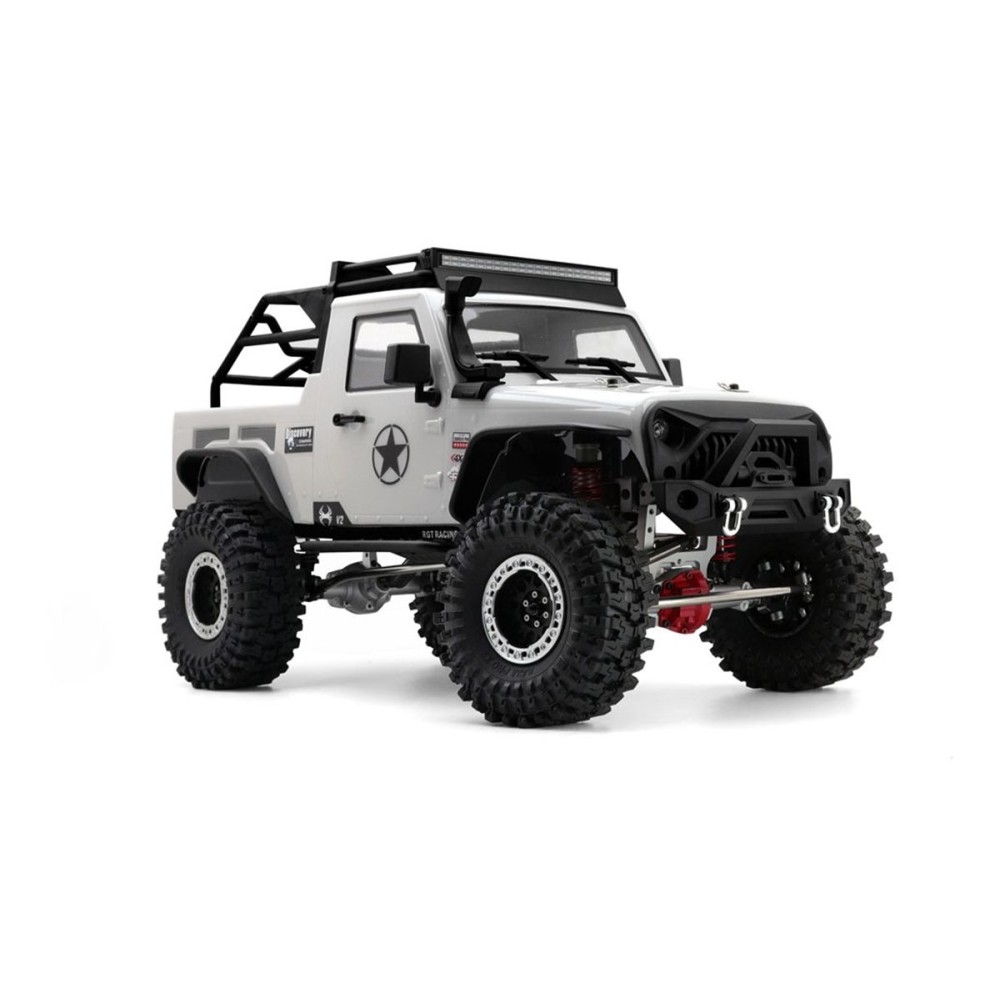 Sestavený RC crawler/expediční speciál bez elektronických komponent. Bílá karoserie.