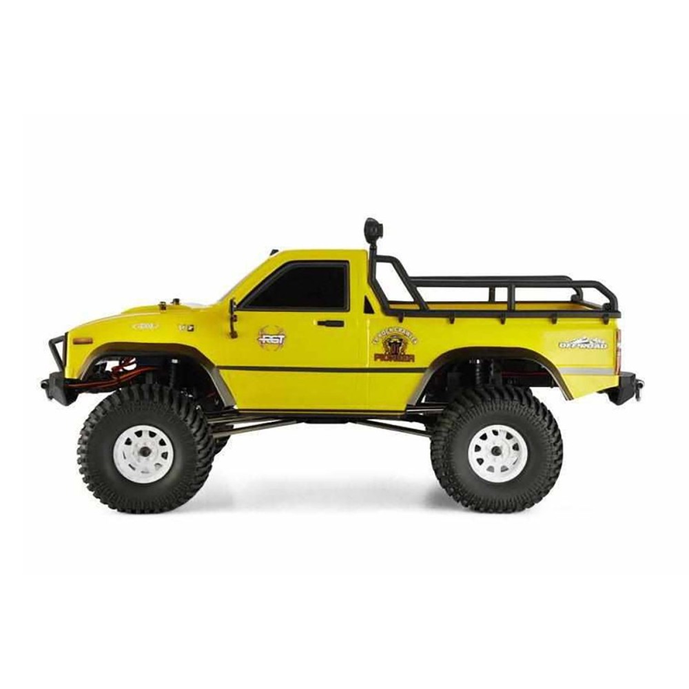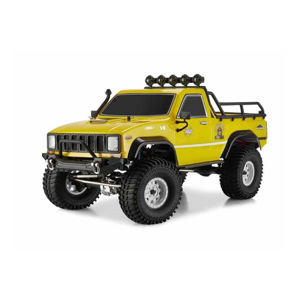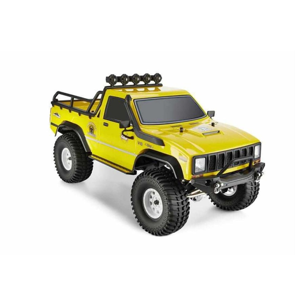 Kompletně sestavený RC crawler/expediční speciál se stejnosměrným motorem a voděodolným regulátorem a silným servem řízení pro začínající a pokročilé jezdce. Set včetně 2,4Ghz RC soupravy. Bez pohonného akumulátoru a nabíječe. Žlutá karoserie.