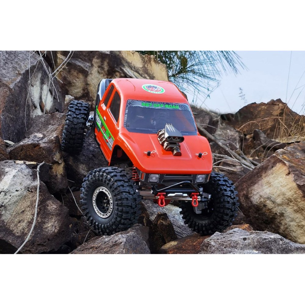 Kompletně sestavený RC crawler/expediční speciál se stejnosměrným motorem, voděodolným regulátorem a dvěma silnými servy řízení přední i zadní nápravy (4WS) pro pokročilé jezdce. Set včetně 2,4Ghz RC soupravy. Bez pohonného akumulátoru a nabíječe. Oranžová karoserie.