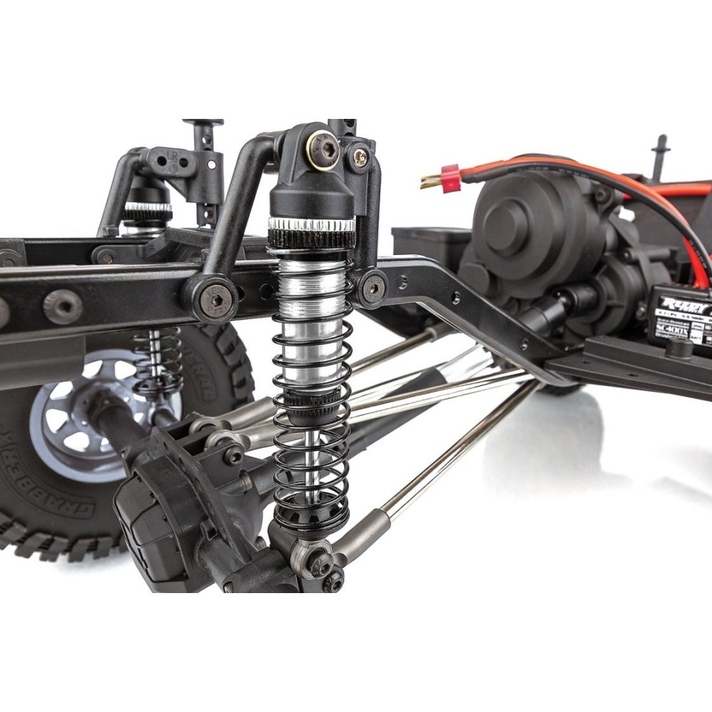 Zavěšení: Odolná vstřikovaná horní a dolní ramena zavěšení s optimalizovanými kulovými čepičkami poskytují maximální kloubovost zavěšení spolu s moderním vzhledem měřítka zavěšení terénních vozidel.