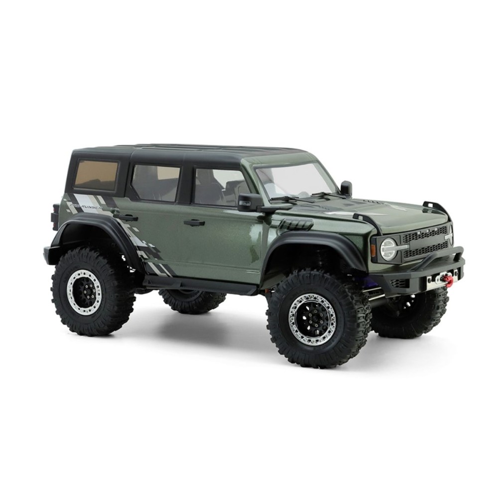 Kompletně sestavený RC crawler/expediční speciál se stejnosměrným motorem, voděodolným regulátorem a silným servem řízení pro pokročilé jezdce. Model je vybaven 2rychl. převodovkou, uzam. předním a zadním diferenciálem, LED modulem apod. Set včetně 8kanálové 2,4Ghz RC soupravy. Bez pohonného akumulátoru a nabíječe. Zelená karoserie.