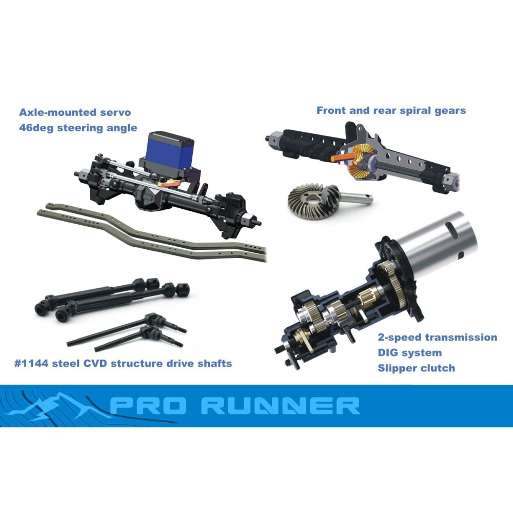 Zatímco jedním mikro servem je ovládáno řazení mezi prvním a druhým rychlostním stupněm, druhé je vyhrazeno pro přepínání mezi náhonem na všechna kola, na přední kola a funkcí DIG, což přináší další možnosti a schopnosti při prostupu těžkým terénem.
