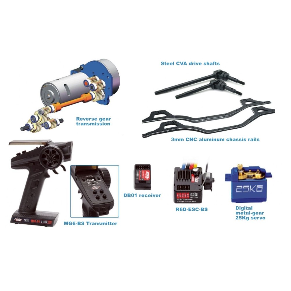 Kompletně sestavený RC crawler/expediční speciál s 30A střídavým integrovaným pohonným systémem...
